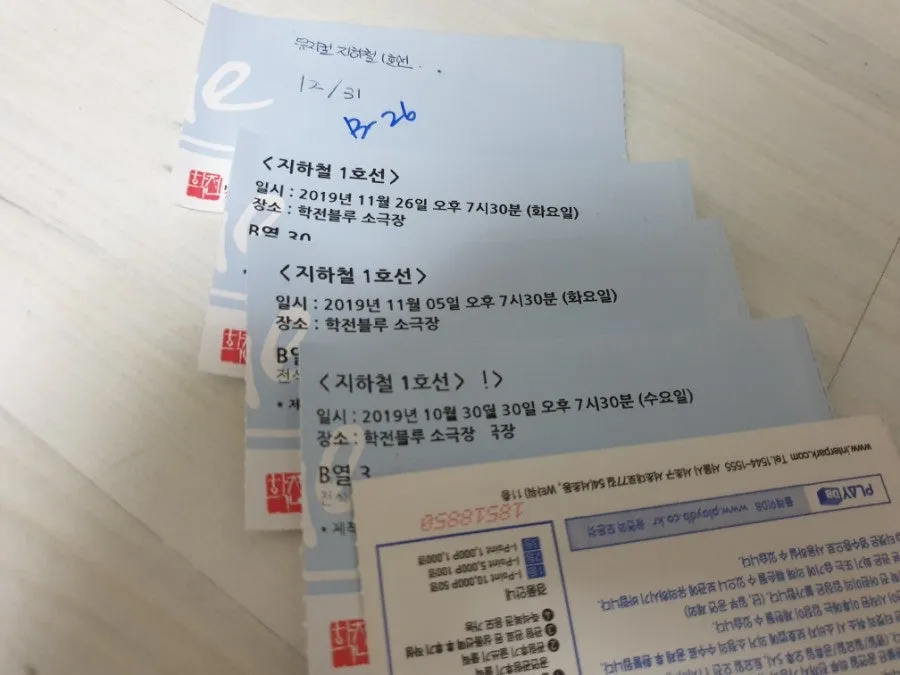 그날 뮤지컬 지하철 1호선에선 정말 내리기 싫었다. 그분들과 계속 타고 가고 싶었다. 오늘은 정말 내리고 싶은 트하철 1호선이다. 그때도, 지금도 결국 삶은 환승의 연속이다.