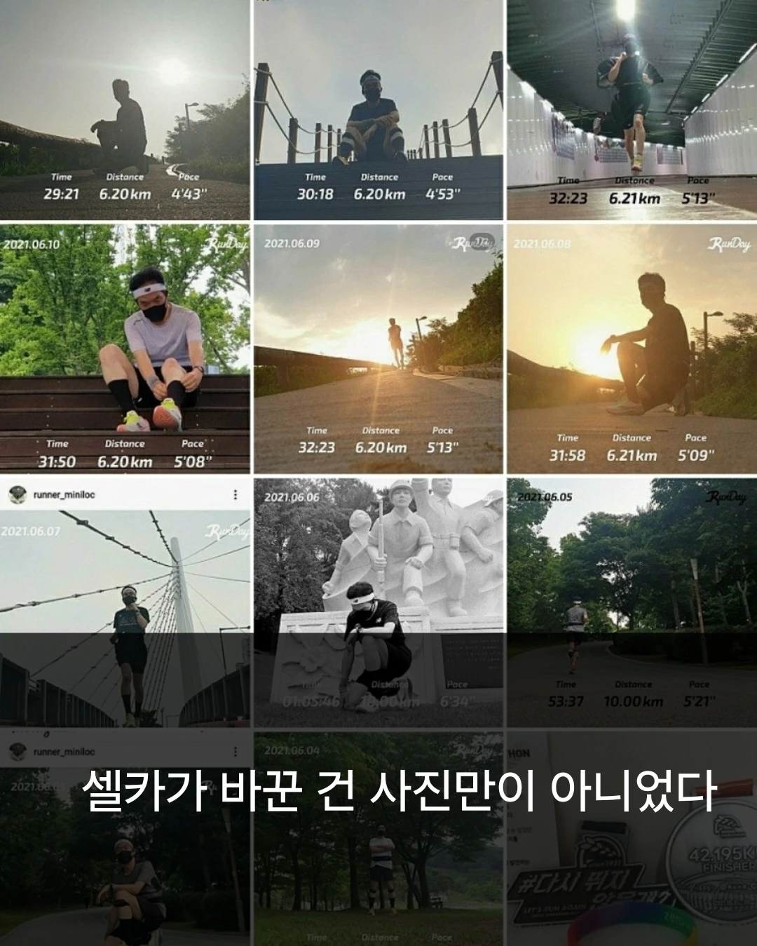"네. 셀카를 찍으면서 달리니까 러닝이 더 재밌어졌어요. 전에는 달리다가 중간에 멈추면 큰일 나는 줄 알았어요. 지금은 달리다가 사진 찍기 좋은 곳을 만나면 잠시 멈춰 서서 셀카를 찍어요. 사진을 찍느라 유심히 살펴보니 공원에 예쁜 곳이 많더라고요."