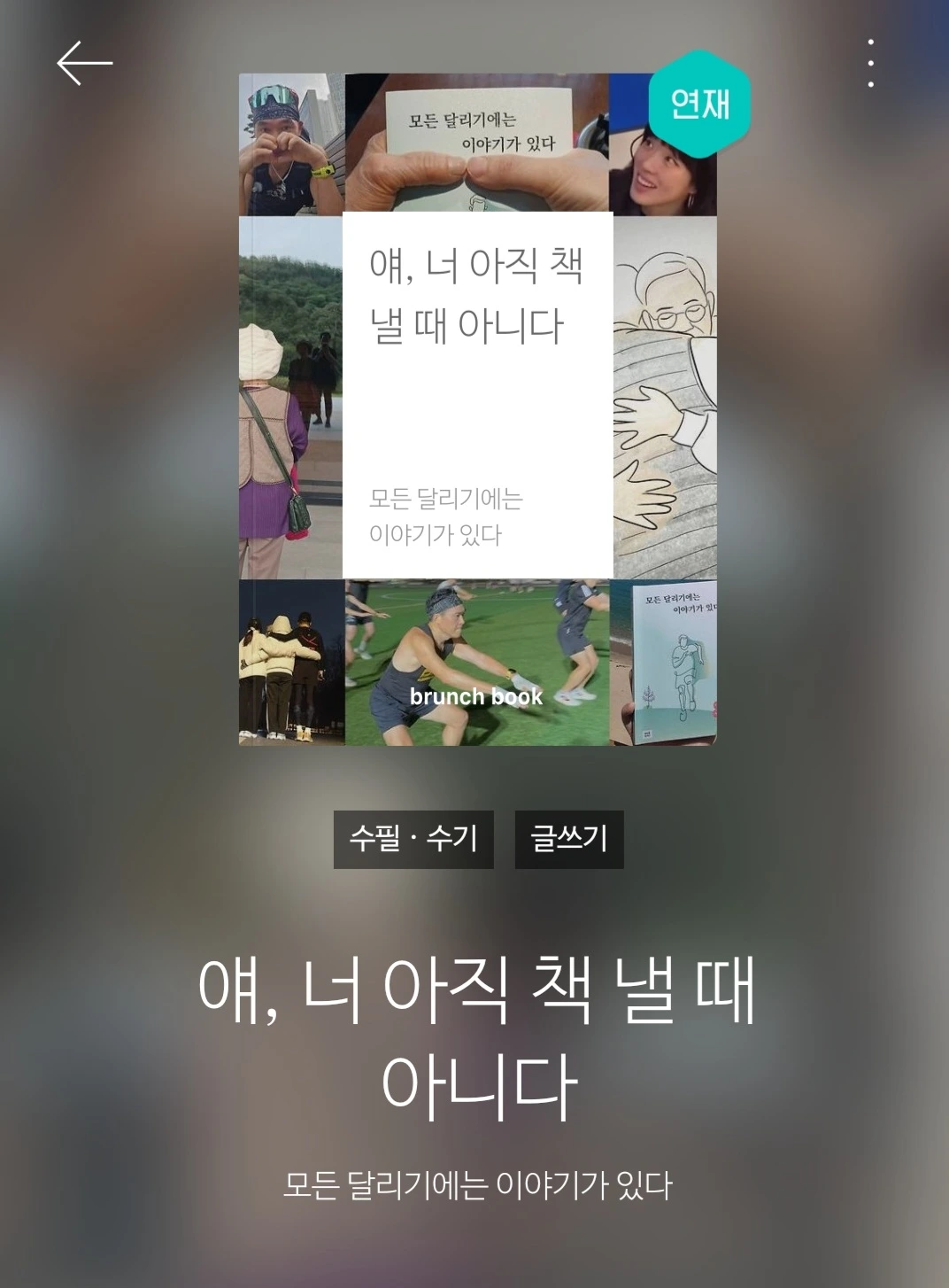 브런치에 뒤늦게 입성해서 가끔 글을 쓰긴 했지만, 하나의 주제로 완결되는 브런치북은 아직 없다. 출간으로 이어지고 출간 후의 도전에 이르기까지 그 이야기가 책 보다 더 재미있지 않겠냐는 분들의 응원에 용기를 냈다. "얘, 너 아직 책낼 때 아니다"란 제목으로 브런치북을 쓰고 있다. 10월 전에 마무리해서 브런치북 출간 응모까지 하는 것 까지가 목표다.