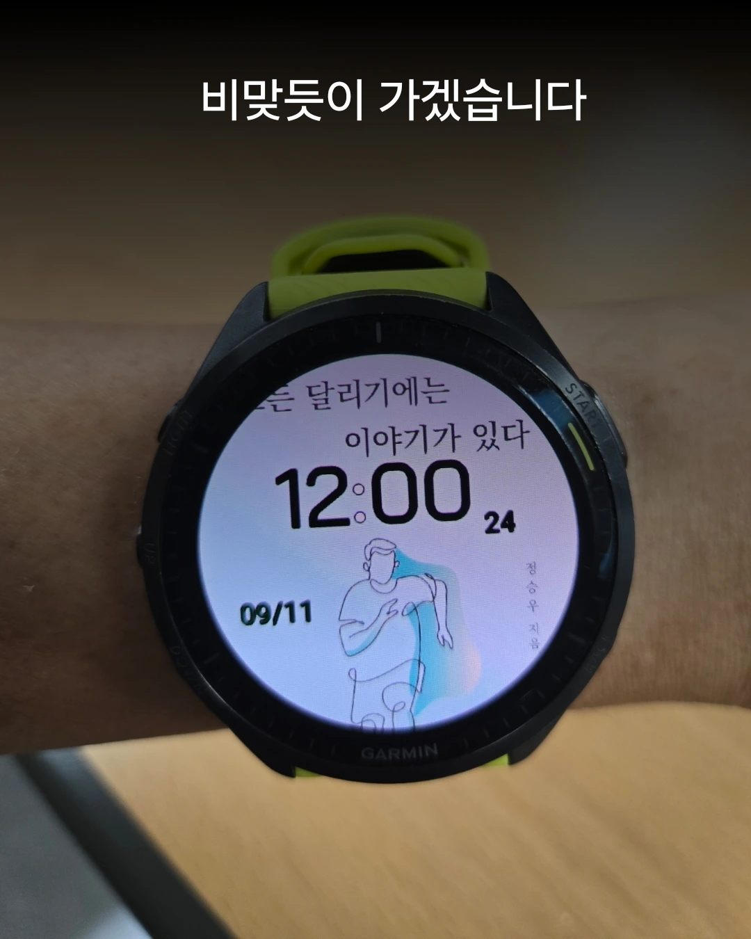'비 맞듯이'는 어떨까? 러너가 되면서 비 맞는 걸 두려워하지 않게 되었다. 예전에는 우산이 있어야만 길을 나설 수 있었고 비를 맞으면 큰일이 날 것처럼 비가 그치기만을 기다리던 때가 있었다. 이제는 다르다. 비가 와도 달린다. 비가 오면 우중런이 낭만이라고 오히려 더 달리기도 한다.