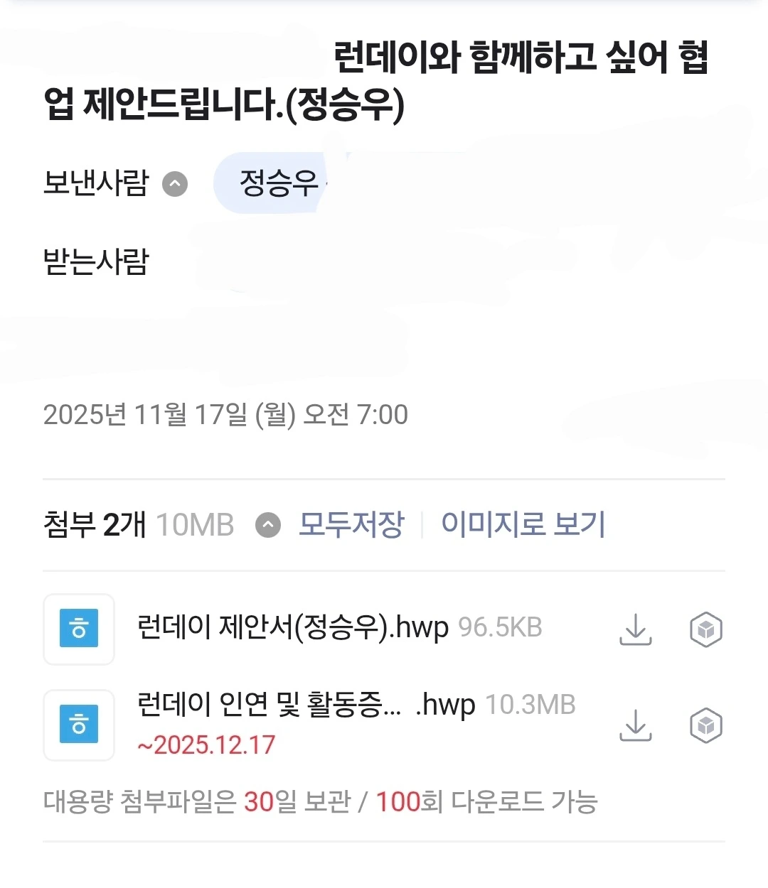 런데이에 제안서를 보냈다