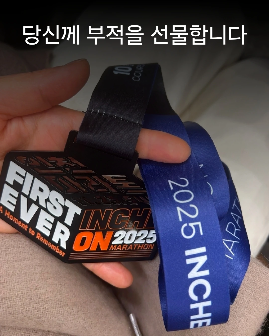러너의 메달은 귀하다. 달리기에 진심인 러너의 메달은 귀하다. 그냥 재미로 나간 대회가 아닌 몇 달 아니 1년의 고통스러운 훈련의 땀방울이 담겨있으니까. 나도 누군가의 삶에 그런 메달 같은 사람이 되고 싶다. 목에 걸면 가슴이 뜨거워지고 그처럼 달려봐야겠다는 마음이 드는 그런 러너가 되고 싶다. 메달을 선물한다는 건 자랑이 아닌 그 메달이 내 삶에 어떤 의미인지를 그분께 나누어주는 일이라 생각하니까.
