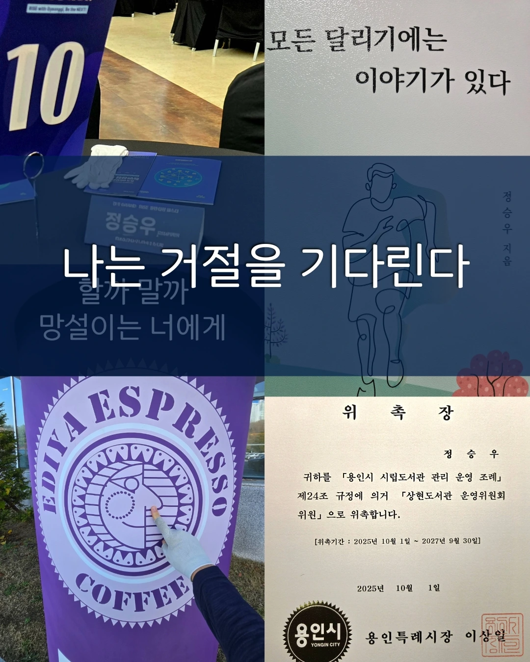 “용인 상현도서관이에요. 이번에 용인시 휴먼북으로 등록했더니, 운영위원 임기가 새로 시작되면서 함께 해보자고 해서 활동하고 있어요. 저는 책 몇 권 더 팔려고 말씀드리는게 아니에요. 제 이야기를 만나서 달리기를 시작하거나 용기를 내시는 분이 계시니까요. 오늘 이렇게 용기내어 전화드린 것도 같은 맥락입니다.”