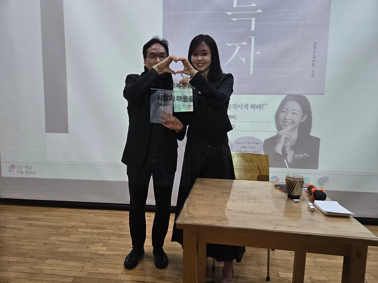 다른 작가님께 내 책을 건네는 일은 여전히 조심스럽다. 관심 없는 책을 드리는 건 예의가 아니니까. 지금까지 참석했던 북토크 중 가장 많은 인원이 모였다. 정흥수 작가님이 말을 시작하는 순간, 강의장이 따뜻한 열기로 가득 찼다. 책 내용보다 더 흥미로운 ‘출간 비하인드 이야기’였다.