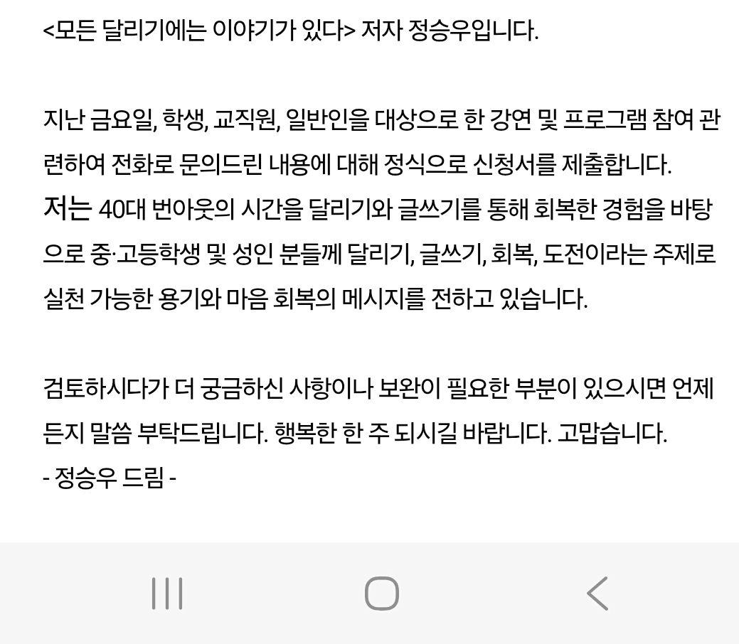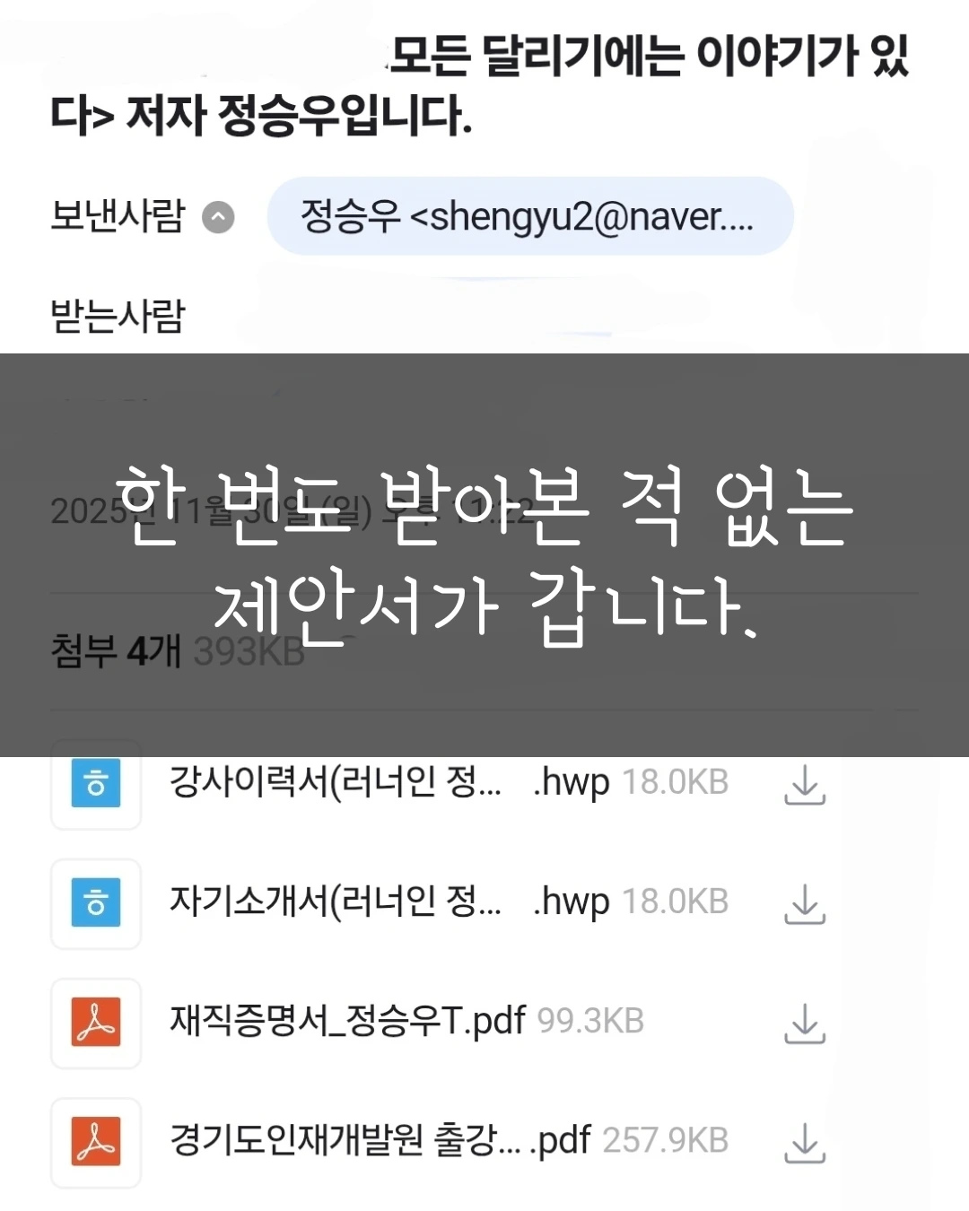 P.S. 담당자님! 지금까지 한 번도 받아본 적 없는 제안서가 갑니다. 러너인 정승우가 썼으니까요. 행복하실 겁니다.