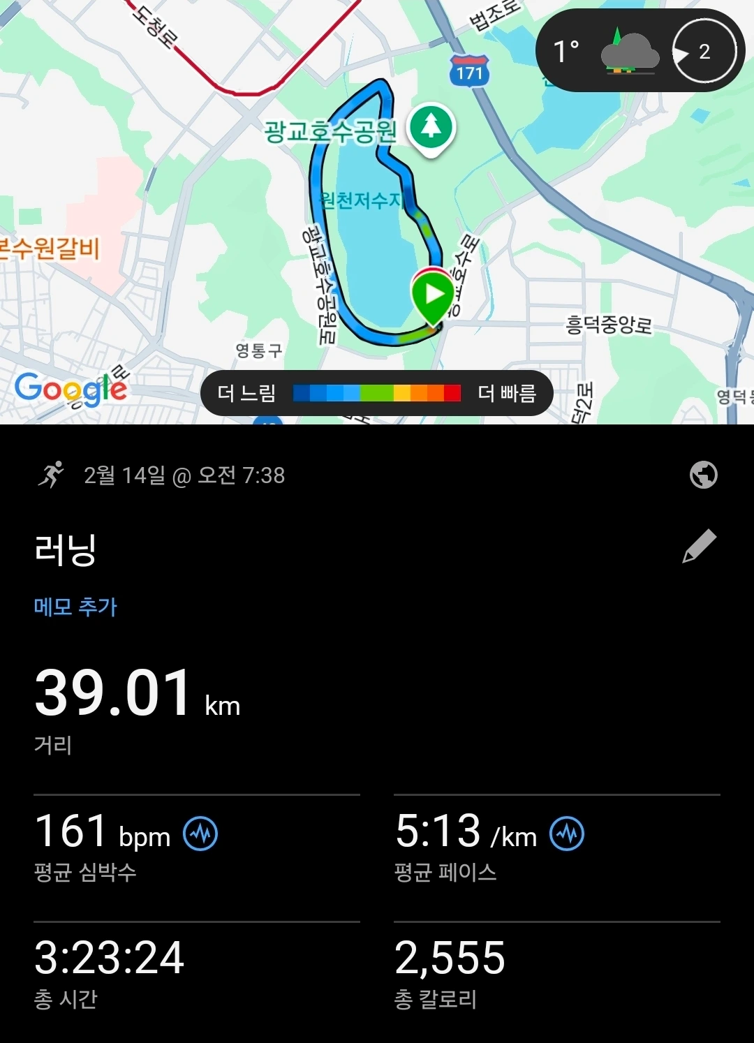 내 책 Tip에 쓴 거리 축지법 활용하기. 광교호수공원 원천호수 1회전 3km를 3km가 아닌 1회전 = 1km로 가정하고 10회전 = 30km(X), 10km(O)로 계산해서 심리적 부담을 1/3로 낮추는 전략. 시계를 보지 않고 1바퀴를 소수점으로 계산한다. 1.5바퀴 째라면 1.5km를 뛰는 중이라고. 진짜 효과가 있었다. 10회전까지 멘털이 든든하게 버티는 힘이 되었다. 꿀팁 내가 먼저 실천하기.