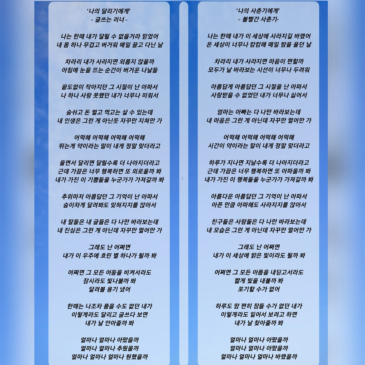 P.S. 볼 빨간 사춘기의 노래 '나의 사춘기에게'를 듣다가 4년 전 나의 달리기에게 글을 쓴다.