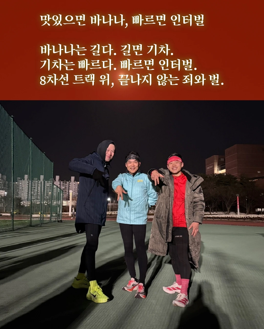 “오늘 몸이 불편하신 분 있나요? 나는 오늘 인터벌 훈련이 불가능해서 조깅이 필요하다 하시는 분?” 가만히 나를 돌아보니, 걱정하는 마음 외엔 너무 멀쩡하다. 나도 모르게 한숨이 새어 나온다. 이런 의미다. ‘혹시 오늘 뛰다가 퍼지면 어쩌죠? 불안한 마음 빼고는 몸은 멀쩡합니다. 코치님.’