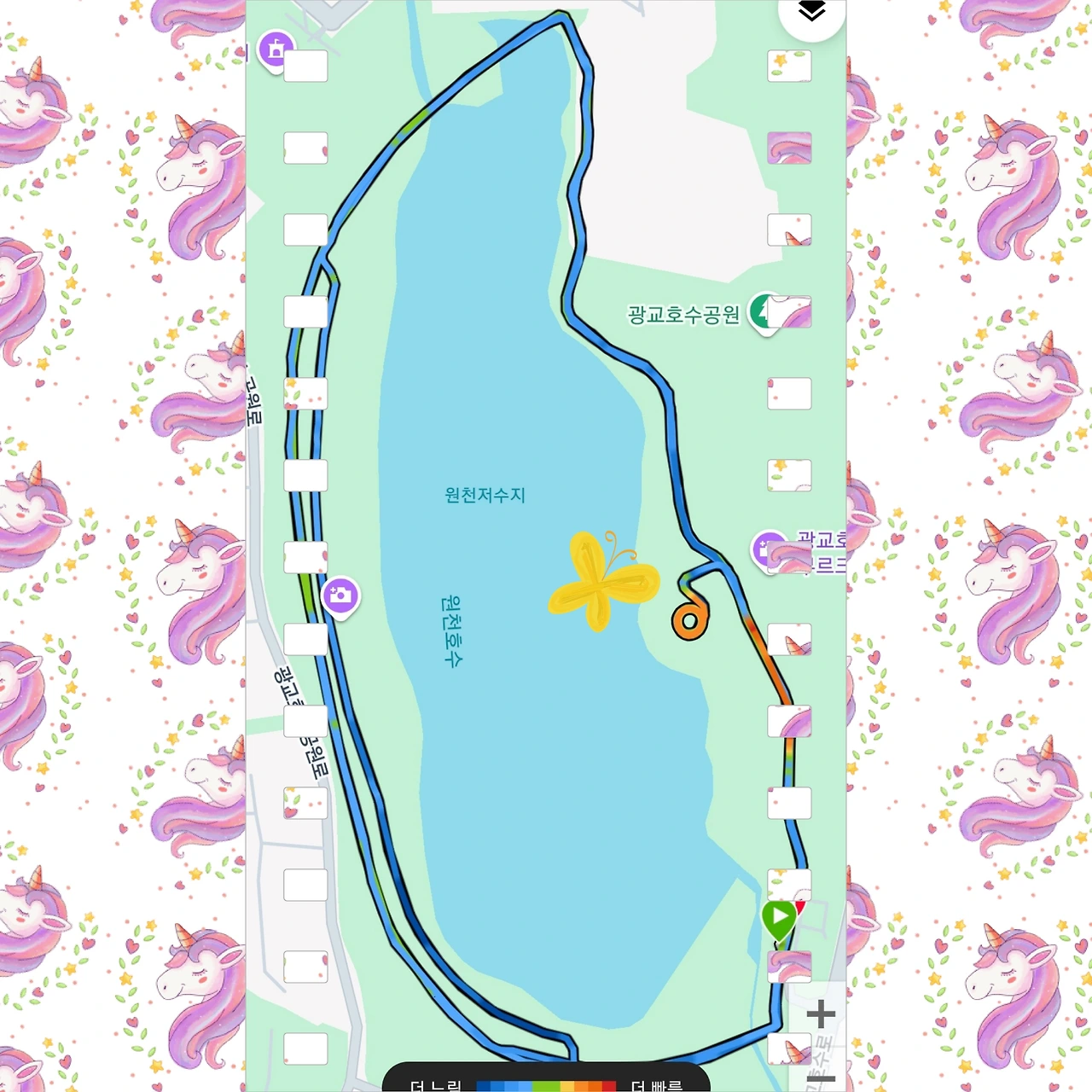 언덕을 넘으며 그날의 나와 마주한다. 주로에서 울고, 또 웃었다. 이곳은 나의 마음속 고향이 되었다. 누구나 자신의 달리기가 태어난 곳이 있다. 한때는 이 호수공원의 야경에 취해, 여기서 죽어도 여한이 없다고 생각한 적도 있었다.