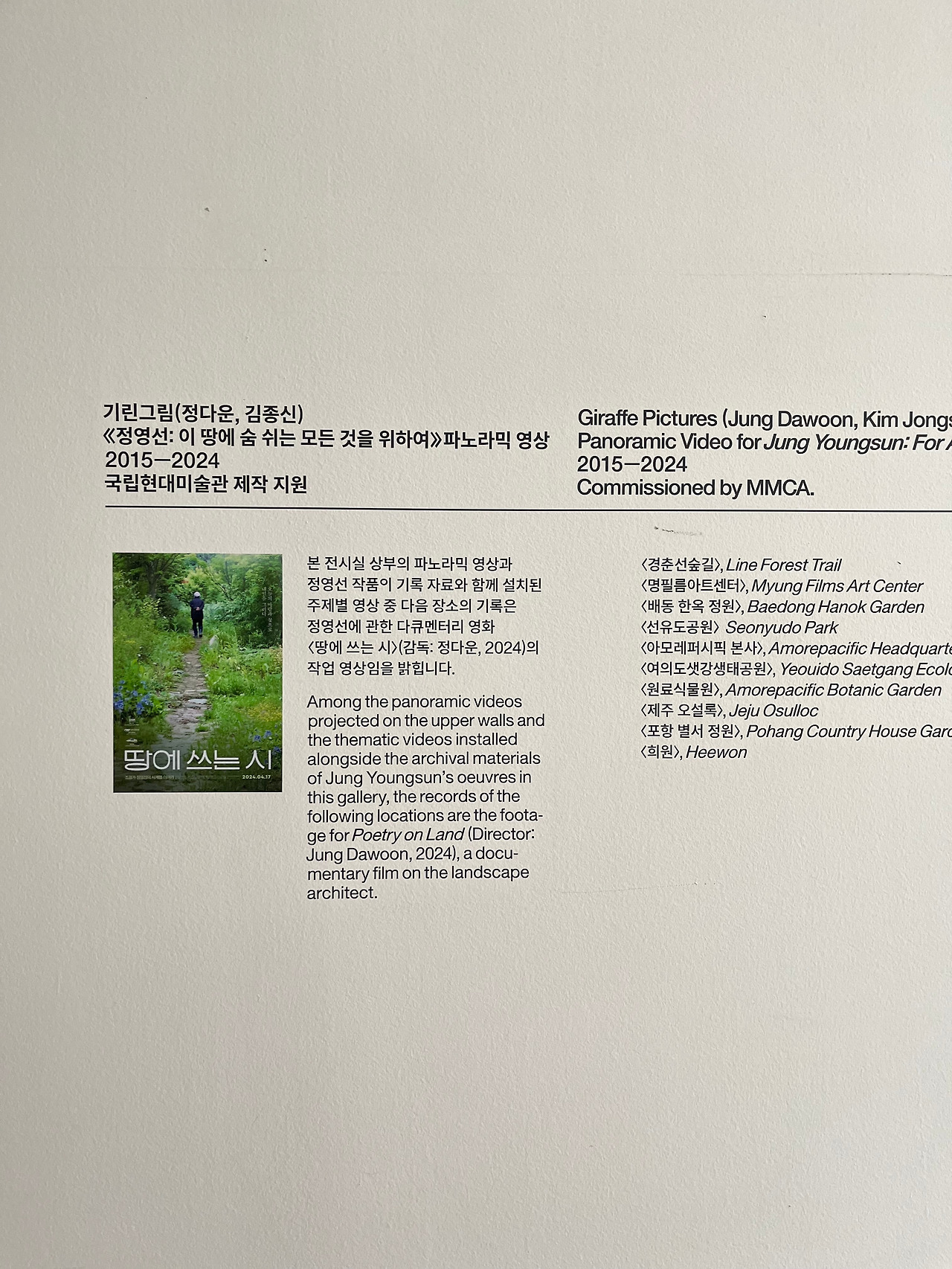 한국 최초 여성 조경가 정영선의 반세기에 걸친 작품 세계를 조명하는 개인전이었다.