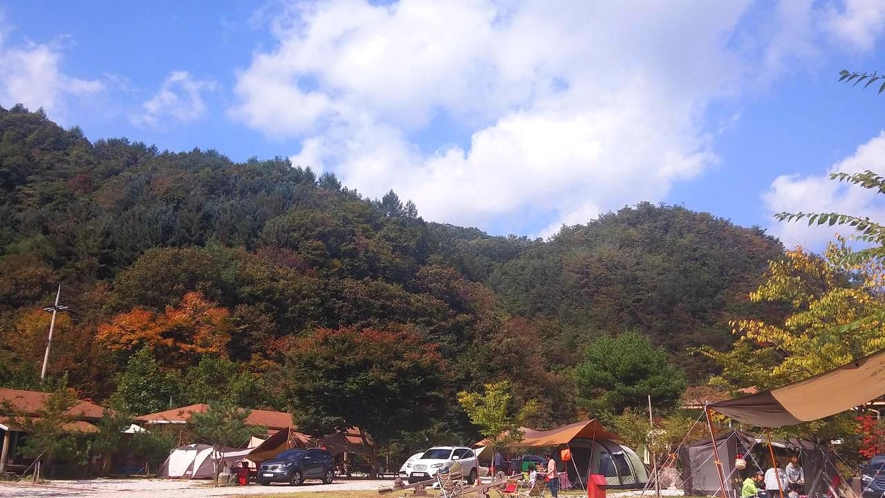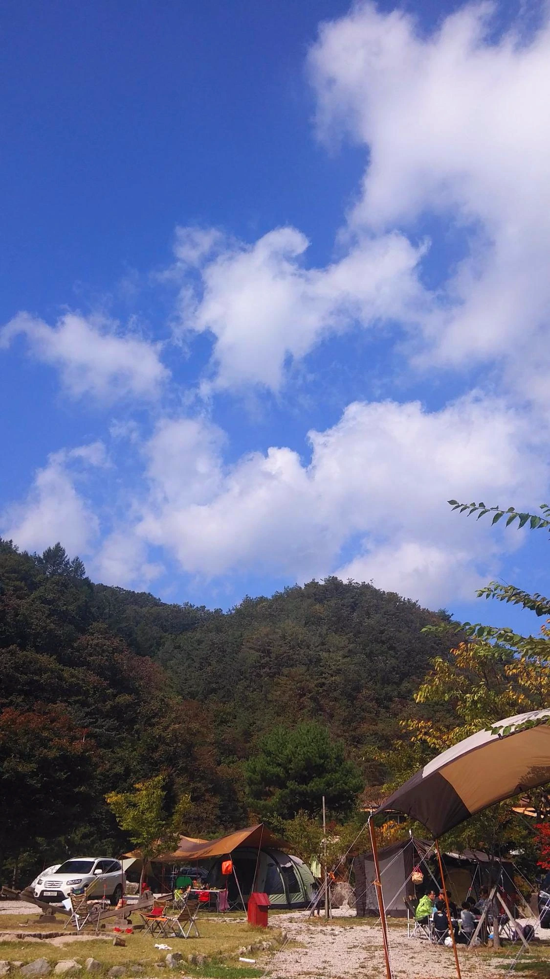 화천 산자락에 위치한 캠핑장에서 맞이하는 아침.