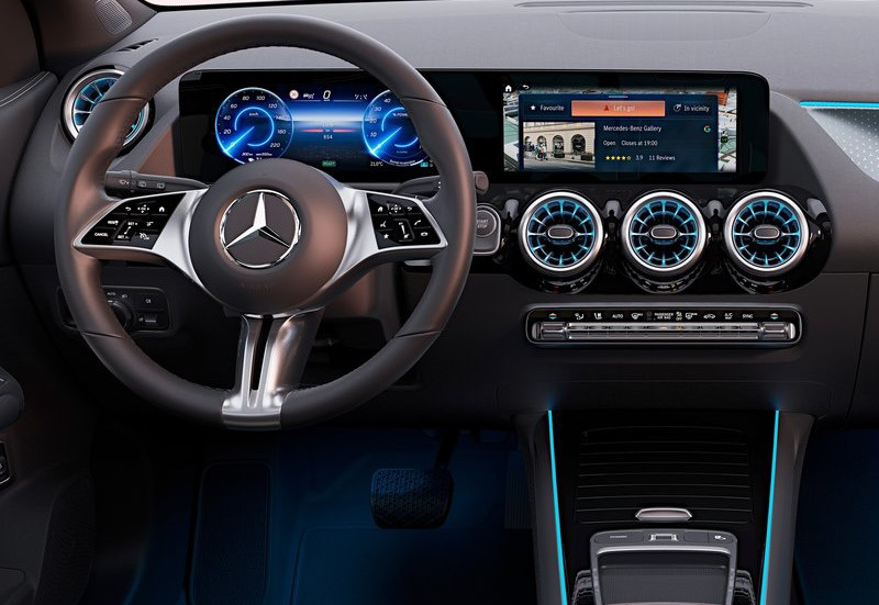 EQA에는 MBUX 인포테인먼트 시스템이 탑재되어 있어, 전기차 전용 내비게이션과 같은 특화된 기능을 지원합니다. 충전소 정보, 주행 가능 거리, 충전 옵션 등을 한눈에 볼 수 있으며, EQ 메뉴를 통해 에너지 흐름 및 소비를 확인할 수 있습니다.