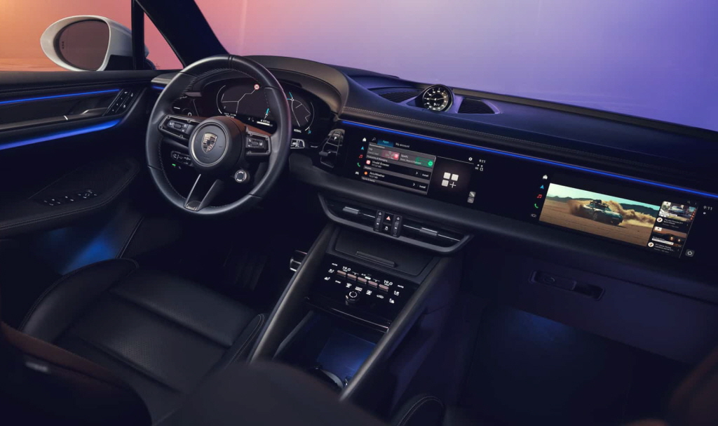 실내 디자인은 최신 포르쉐 인테리어 레이아웃을 따르며, 디지털화된 기술이 적용되었습니다. 운전석에는 12.6인치 디지털 계기판이 탑재되어 있으며, 센터와 동승석 디스플레이는 각각 10.9인치로 구성되어 있습니다. PCM 인포테인먼트 시스템은 안드로이드 기반으로 업그레이드되었습니다.