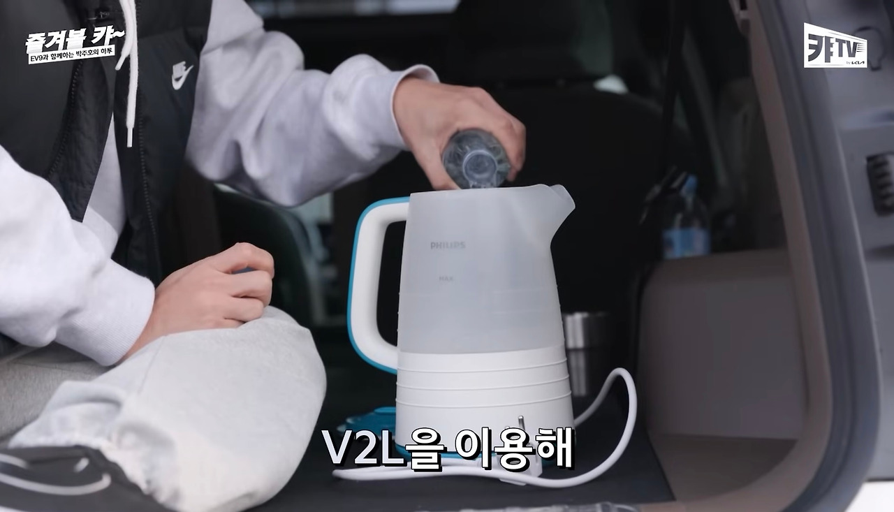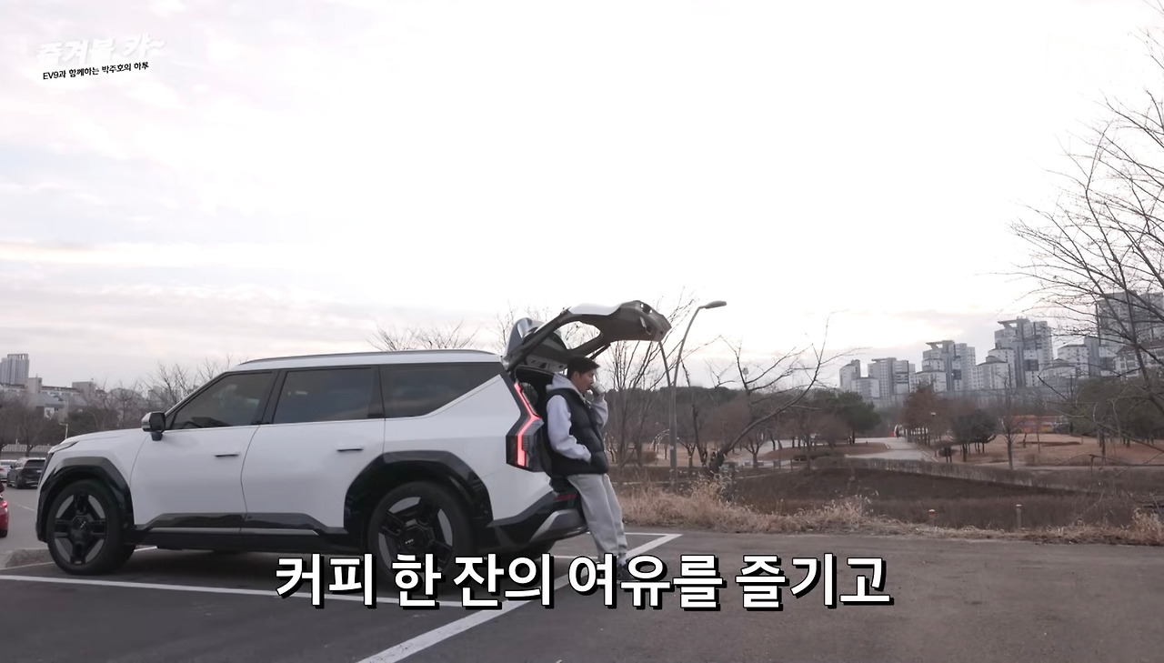 EV9의 특징적인 디자인에 대해 박주호는 "굉장히 크고 각진 디자인이 남성적인 매력을 강조한다"며 긍정적인 평가를 내렸습니다. 또한, "미래지향적인 휠 디자인"에 대해서도 언급하며 차량의 혁신적인 스타일을 칭찬했습니다. 이 외에도, EV9의 V2L(차량 내부에서 외부로 전력을 공급하는 기능)을 이용해 커피를 즐기는 모습을 선보이며, EV9의 다양한 기능을 소개했습니다.