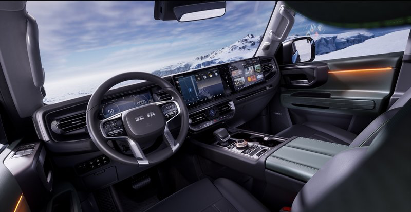 BJ40은 0.4의 Cd 값을 달성하는 공기역학적 설계를 자랑하며, 전통적인 오프로드 차량의 모습에 현대적이고 세련된 디자인 요소를 가미했습니다. 내부는 사용자 편안함을 위해 강인한 블록 형태의 구조와 따뜻하고 부드러운 재료를 조화시켰습니다. 듀얼 12.8인치 스크린, 10.25인치 클러스터, 1.92인치 중앙 스타트 스크린 및 주변 조명은 쾌적한 환경을 제공합니다.