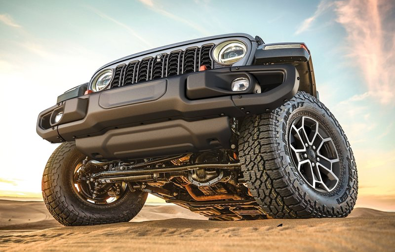 루비콘 모델은 오프로드 주행에 최적화된 모델이며 17인치 휠과 4.10의 후축 비율을 갖추고 있으며, 33인치의 올 터레인 타이어를 장착하여 더욱 강력한 오프로드 성능을 발휘합니다.