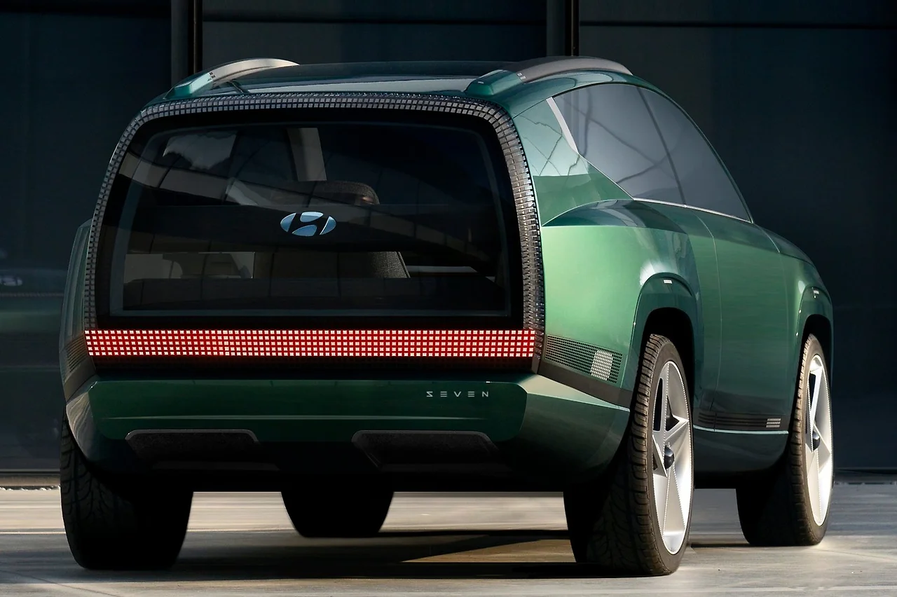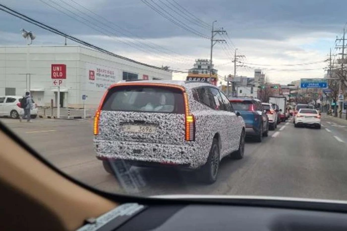 현대 스타리아를 연상시키는 수직형 후미등과, 루프 스포일러를 가로지르는 제 3의 브레이크 라이트가 이 차량의 특징입니다. 박스형 후면 디자인은 캐딜락 에스컬레이드를 떠올리게 하며, 각진 유리 하우스 실루엣은 벨트라인의 섬세한 각도를 강조해 아이오닉 7의 강인한 인상을 더합니다. 위장막을 씌웠음에도 불구하고, 아이오닉 7의 매력은 여전히 눈에 띕니다.