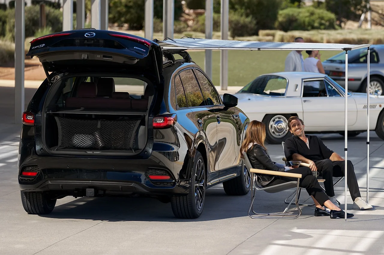 CX-70의 디자인은 마즈다 SUV 라인업의 일관된 스타일을 유지하면서도, CX-90과 비슷한 대담한 비율을 자랑합니다. 이 차량은 21인치 크기의 휠을 장착하는데, 이는 두 가지 새로운 디자인으로 제공되어 차량의 전체적인 외관과 잘 어울립니다. 전면에는 광택이 나는 검정색 벌집 모양 그릴이 장착되어 있고, 뒤쪽 지붕 스포일러도 같은 색상으로 마무리되어 있습니다. 외부 색상에 관한 구체적인 정보는 아직 공개되지 않았지만, 마쓰다 CX-90과 CX-50에서 볼 수 있는 차분한 색조와 유사한 색상 팔레트가 제공될 것으로 예상됩니다. 특히 CX-90의 아티산 레드와 CX-50의 지르콘 샌드와 같은 시그니처 색상이 추가될 가능성이 높습니다.