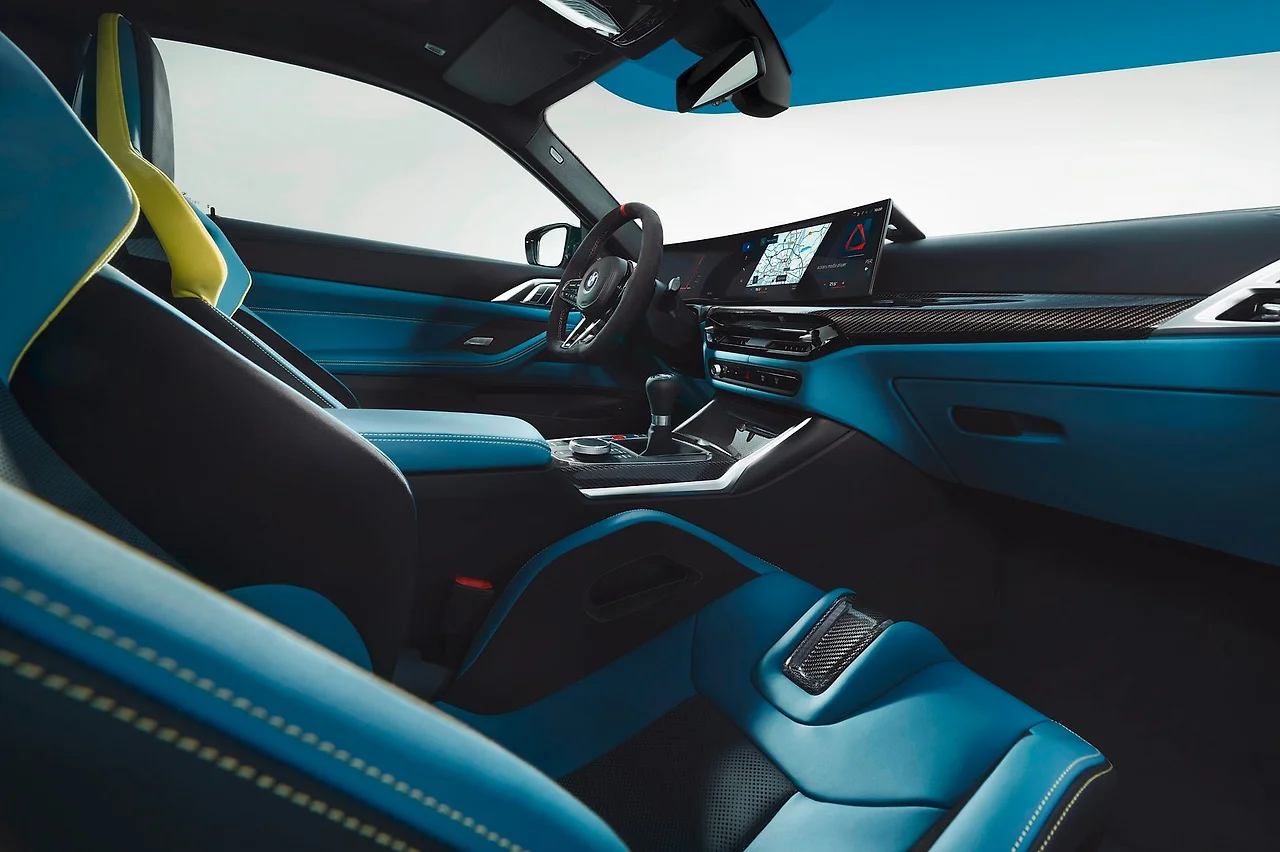 실내는 새로운 스티어링 휠과 다크 그라파이트 매트 트림으로 고급스러움이 강조되었습니다. 최신 BMW 곡선형 디스플레이와 iDrive 8.5 소프트웨어가 탑재되어 사용자 경험을 향상시킵니다. M4 쿠페의 트렁크 공간은 뒷좌석 뒤에 438리터로 넉넉하여 실용성 또한 갖췄습니다.