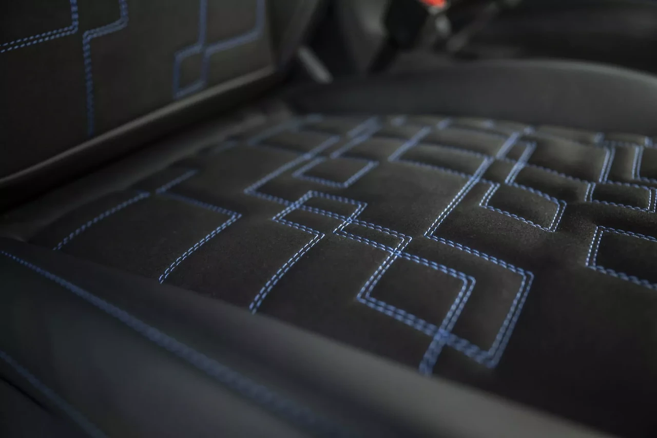 실내에 들어서면 MS-RT만의 독특한 시트와 파란색 스티치 패턴이 운전자를 환영합니다. 모든 헤드레스트와 바닥 매트에 새겨진 MS-RT 엠블럼은 이 차량이 얼마나 특별한지 다시 한번 강조해 줍니다. 또한, 미드나잇 블루 색상으로 마감된 스티어링 휠의 스티칭은 포드의 세심한 디테일을 보여줍니다. 듀얼 존 온도 조절과 후방 카메라 같은 고급 편의 기능들이 기본적으로 탑재되어 있어, 운전하는 동안 편안함과 편리함을 모두 누릴 수 있습니다.