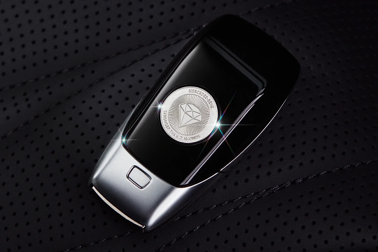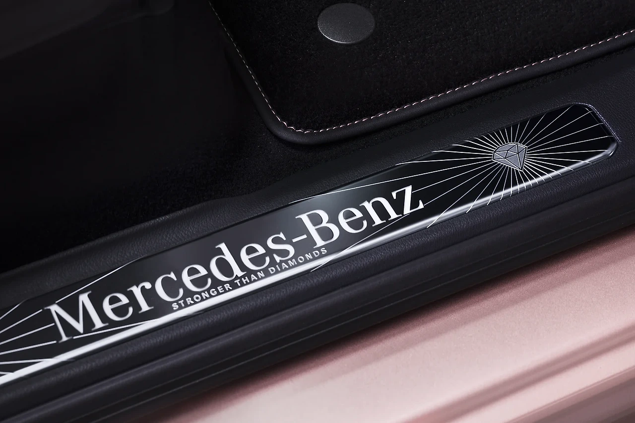 차량의 각 문 잠금 핀에는 25캐럿의 다이아몬드가 세팅되어 있어, 이 차량의 소유자에게 영원한 사랑과 약속의 의미를 전달합니다. 또한, 차량 외부 손잡이에는 다이아몬드 로고가 양각되어 있으며, 차량 키는 진짜 은으로 만들어진 배지와 함께 특별 에디션의 이름이 새겨져 있어, 소유의 자부심을 더합니다.