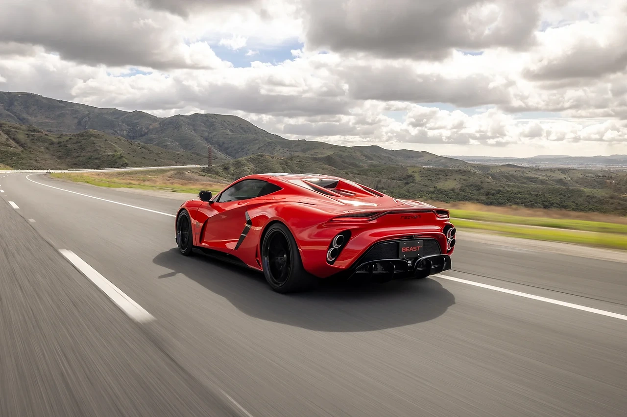 Beast는 경량급 항공우주 등급 탄소 섬유로 제작되어, F1 차량에 사용되는 것과 동일한 소재를 사용합니다. 이는 차량의 무게를 대폭 줄여, 미국에서 판매되는 차량 중 가장 가벼운 편에 속합니다. 또한, 6.2리터 트윈터보 V8 엔진은 1,000마력의 엄청난 출력을 자랑하며, Tremec의 8단 듀얼 클러치 변속기를 통해 후륜으로 이 모든 힘을 전달합니다.