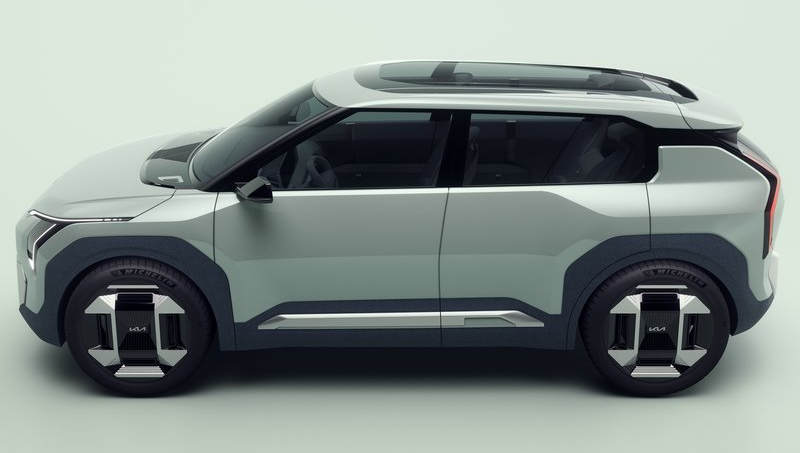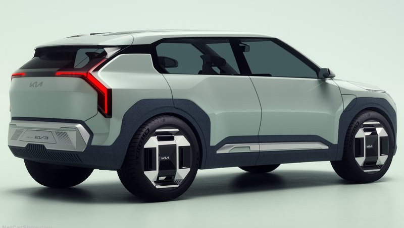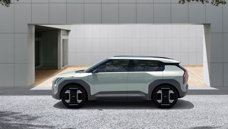 초기 컨셉트에서 볼 수 있었던 비율과 디자인 요소, 수직으로 배열된 LED 라이트와 조각감 있는 외관이 EV3에서도 그대로 발견됩니다. 실제 생산 모델에서는 조금 더 현실적인 수정이 가해져, 바퀴 크기가 소폭 줄어들고, 사이드 미러가 커지며, 휠 아치 주변에는 보호를 위한 플라스틱 클래딩이 추가되었습니다. 또한, 더 튼튼한 느낌을 주는 두꺼운 기둥과 실제 문 손잡이가 도입되었습니다.