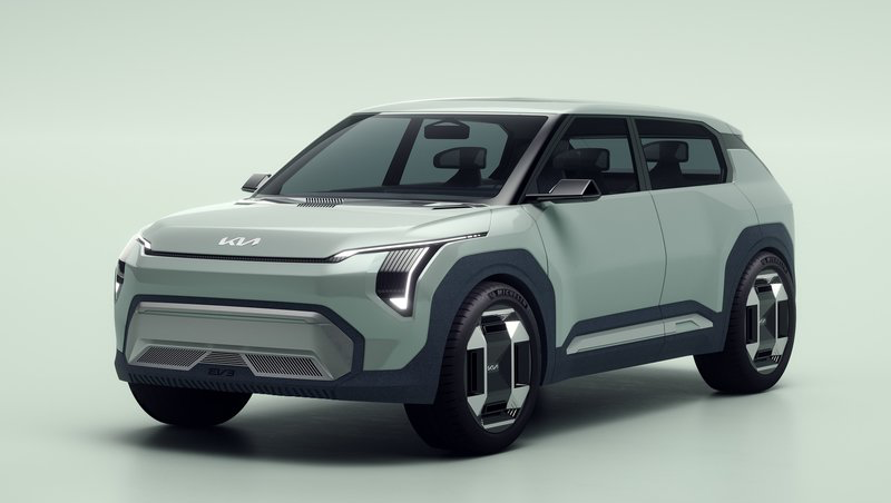 실내는 두 개의 디지털 스크린으로 구성된 콕핏과 간결하면서도 세련된 대시보드 디자인으로 눈길을 끕니다. 기어박스 조작기는 스티어링 컬럼에 부착되어 있어, EV9에서 볼 수 있었던 조작 방식을 그대로 유지합니다. 또한, 인포테인먼트 시스템 아래에는 다양한 단축키가 마련되어 있고, 기후 조절용 토글 스위치와 센터 콘솔에는 추가적인 버튼들이 배치되어 있습니다. 기아는 실내 곳곳에 친환경 재료를 사용할 것으로 기대됩니다.