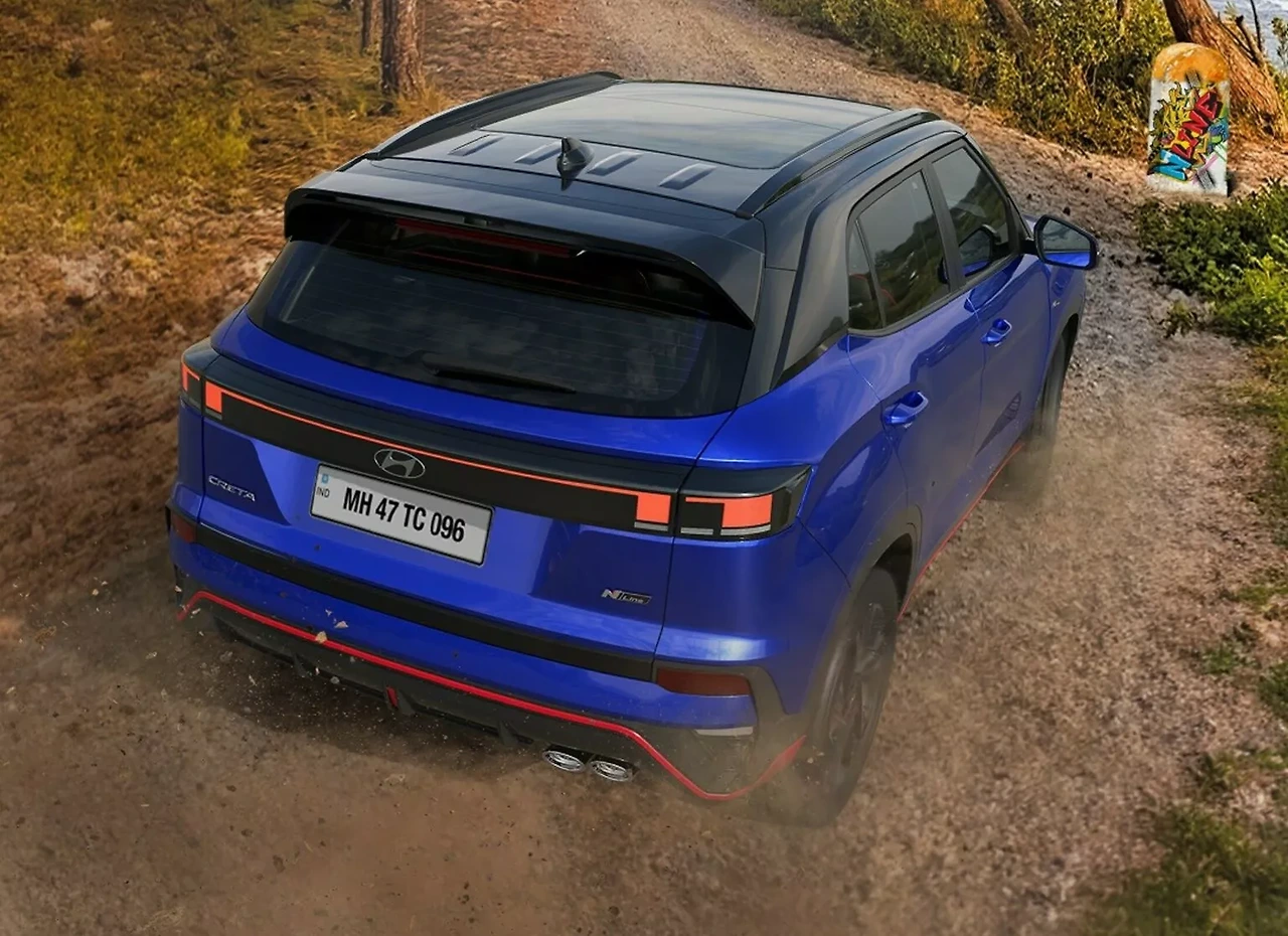 N 라인은 기존 크레타와 확연히 구분되는 외관을 자랑합니다. 더욱 얇아진 벌집 모양의 그릴과 낮게 배치된 현대 로고는 차량의 모던한 느낌을 강조합니다. 스키드 플레이트와 범퍼에 추가된 레드 액센트는 이 차의 스포티한 성격을 강조합니다.