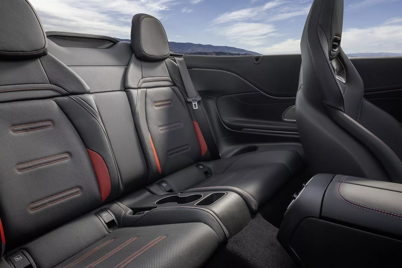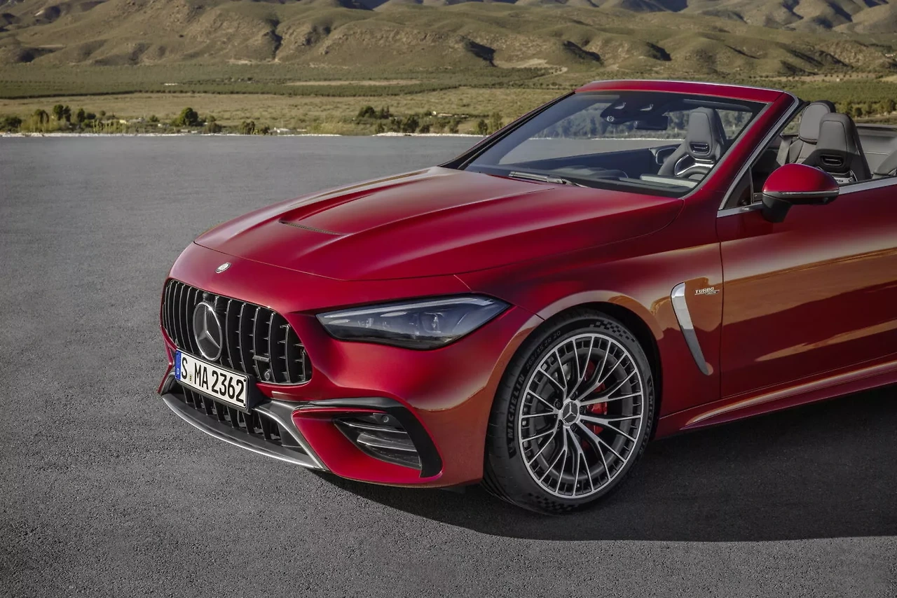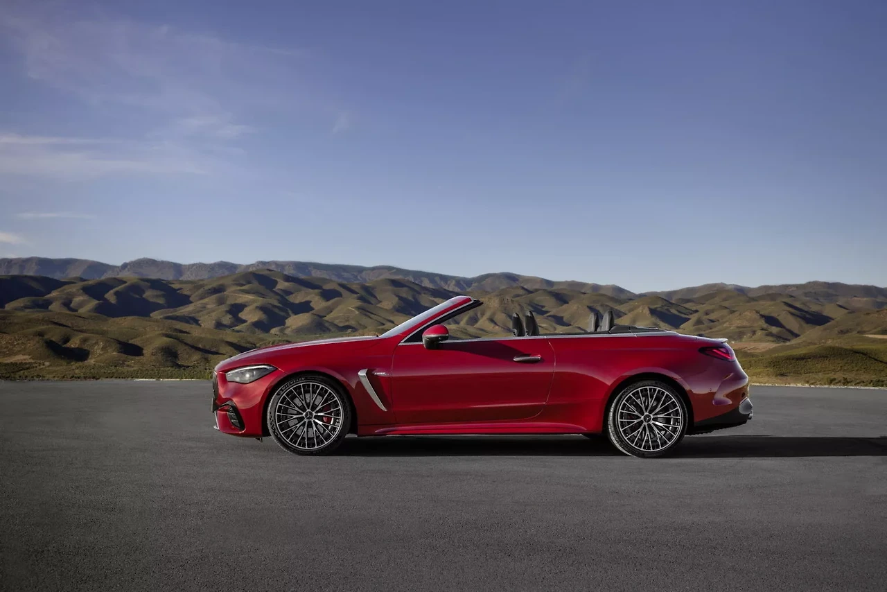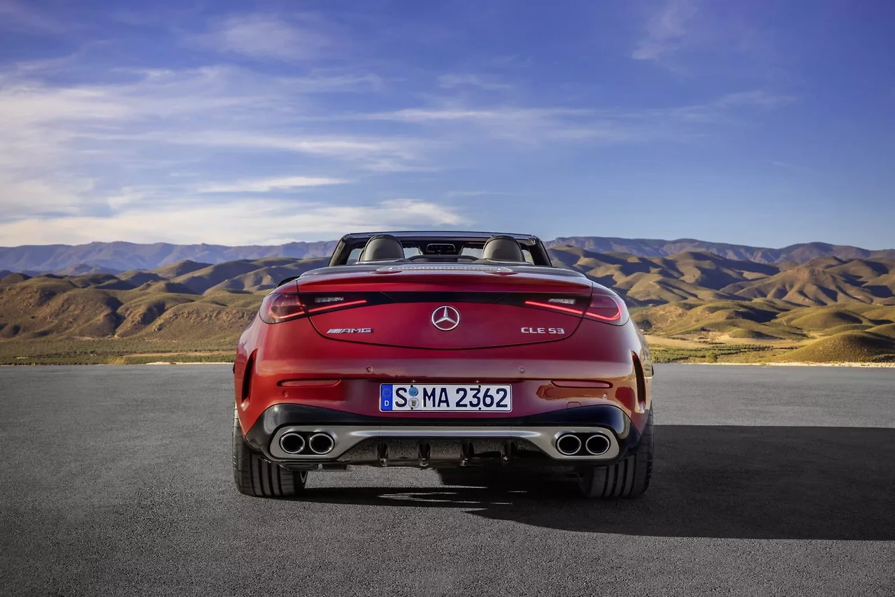 CLE 53 카브리올레는 AMG 특유의 공격적인 그릴, 스포티한 범퍼, 넓은 펜더, 그리고 네 개의 원형 배기구가 특징입니다. 블랙, 레드, 그레이 색상 중 선택 가능한 전기식 접이식 천장은 CLE 53 쿠페와 차별화되는 요소이며, 새롭게 디자인된 뒤 트렁크 데크와 크롬 트림이 주변을 감싸는 디자인이 돋보입니다.