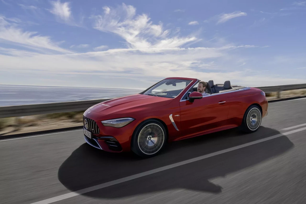 메르세데스-AMG는 새로운 CLE 53 4Matic+ 카브리올레를 선보였습니다. 이 차량은 기존 쿠페 버전을 기반으로 한 오픈형 쿠페 모델로, CLE 시리즈 중 가장 강력한 드롭탑 버전입니다. 3.0리터 마일드 하이브리드 트윈터보 직렬 6 기통 엔진을 탑재하여 최대 443마력과 600Nm의 토크를 자랑합니다.
