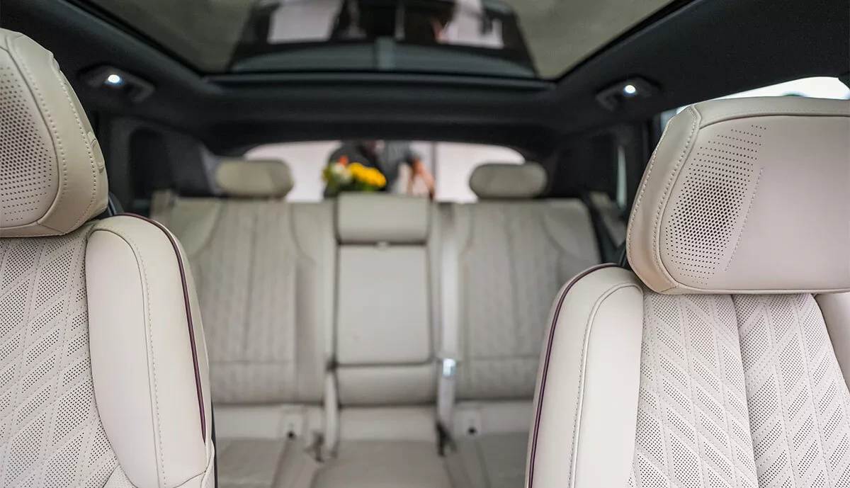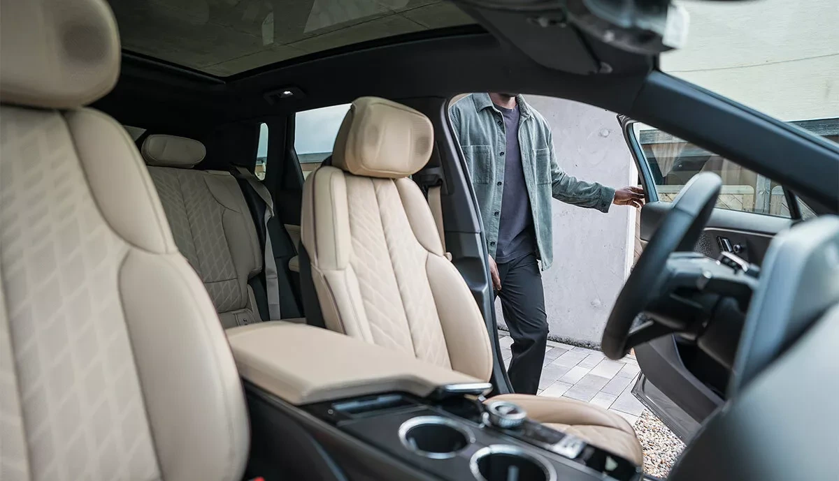 실내는 33인치 커브드 어드밴스드 LED 디스플레이가 중앙에 배치되어 있으며, 원목, 알루미늄, 나파 가죽 등 고급 소재로 세련된 분위기를 연출합니다. 26가지 색상의 LED RGB 스펙트럼을 제공하는 앰비언트 라이트는 선택한 주행 모드에 따라 반응하여 독특한 실내 분위기를 만들어냅니다.