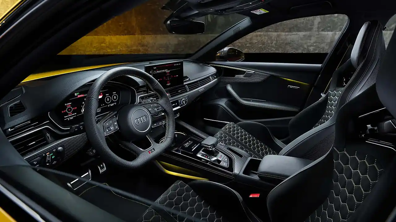 RS4 아방트 25주년 에디션은 기존 모델 대비 0.4인치 낮은 서스펜션을 제공하고, 수동으로 더 낮출 수 있어 핸들링이 개선되었습니다. 또한 RS 스포츠 배기 시스템과 세라믹 브레이크가 표준으로 장착되어 더욱 강력한 제동력을 제공합니다. 아우디는 이 모델에 20인치 단조 휠과 Pirelli P Zero Corsa 타이어를 기본으로 장착했습니다.