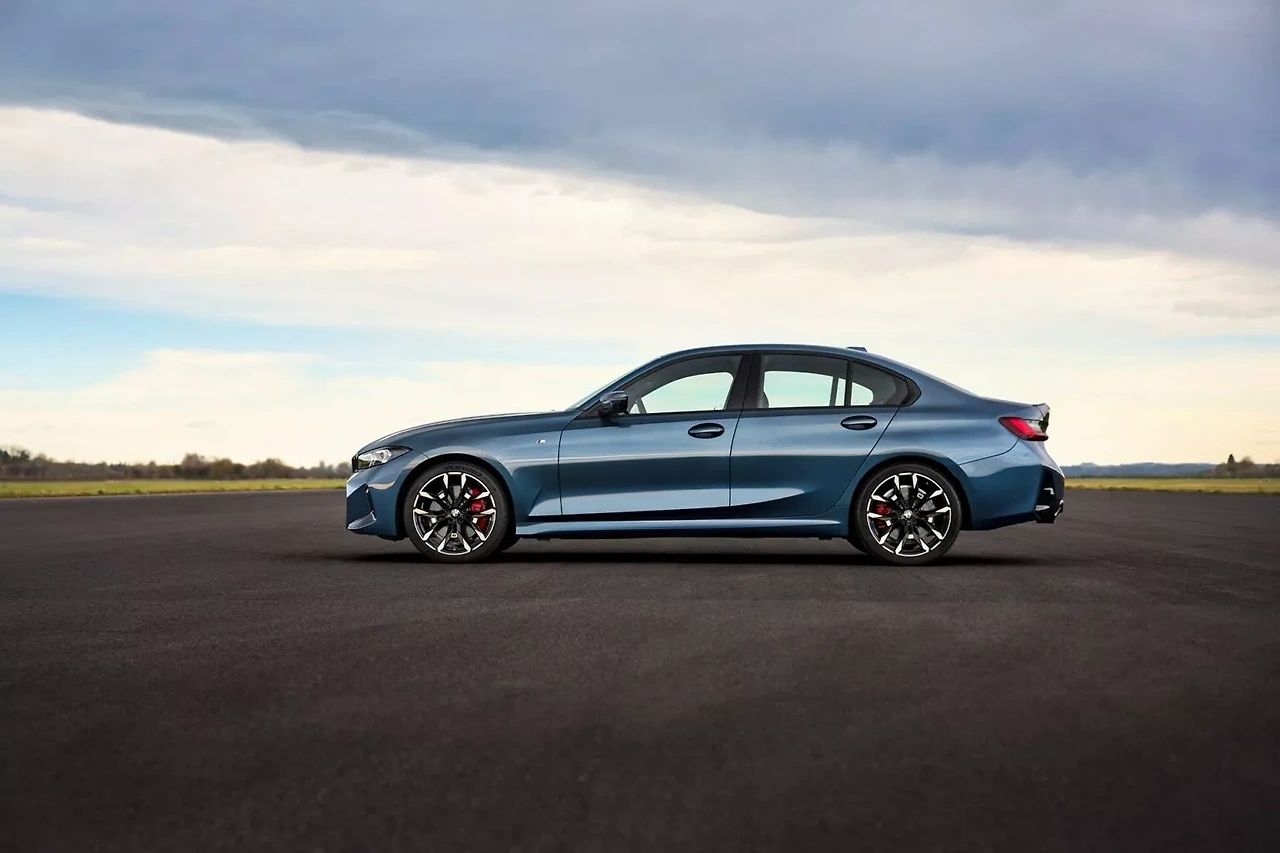 BMW의 대표 모델인 3시리즈가 2025년형으로 새롭게 업데이트되었습니다. 새로운 색상으로는 Arctic Race Blue 메탈릭과 Vegas Red 메탈릭이 추가되었습니다. 개인 맞춤형 색상으로는 Frozen Pure Grey 메탈릭과 Frozen Portimao Blue 메탈릭도 선택할 수 있습니다. 특히, M 스포츠 패키지를 기본으로 장착한 M340i 모델은 새로운 19인치 M 알로이 휠을 장착하고 있습니다. 이 휠은 더블 스포크 디자인으로 스포티한 외관을 더욱 돋보이게 합니다.