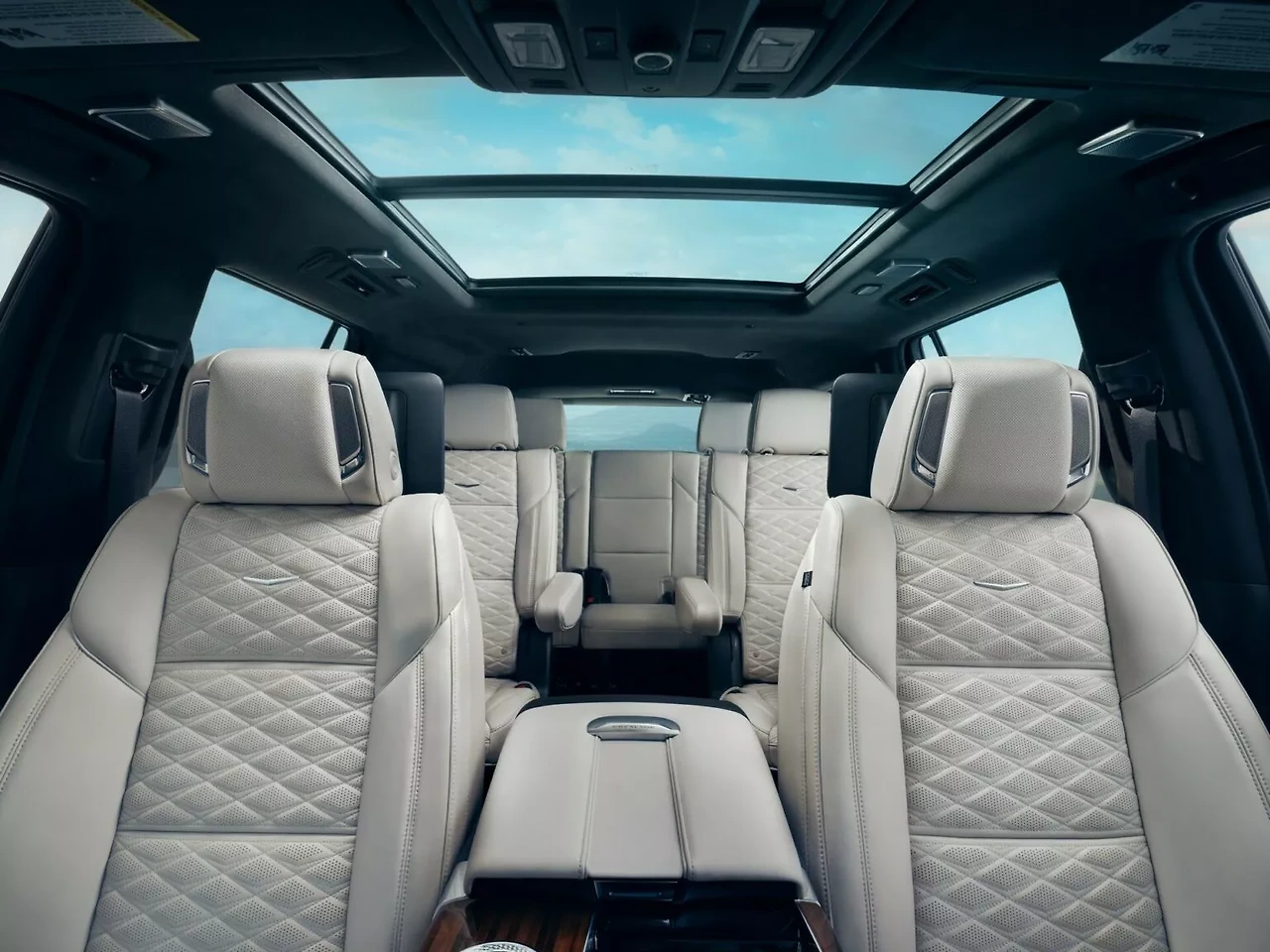 실내는 완전히 새롭게 디자인되어 에스컬레이드 IQ와 최고급 세단 셀레스틱을 연상시킨다. 35인치 운전자 디스플레이와 20인치 조수석 디스플레이가 결합된 곡면 디스플레이가 실내를 압도한다.