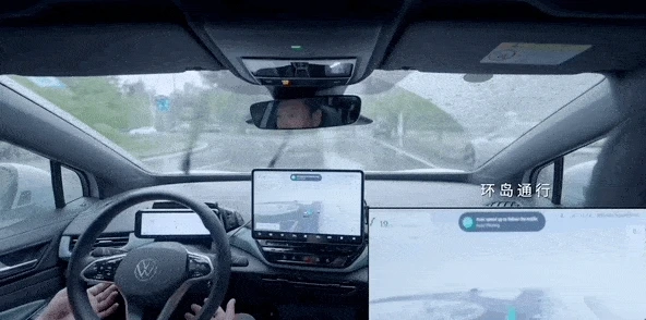 중국에서 흔치 않은 회전교차로 주행에서도 ID.4는 앞차의 갑작스러운 끼어들기에 적절히 대응하며 원활히 통과했다.