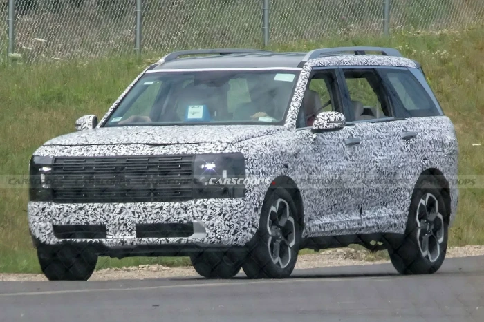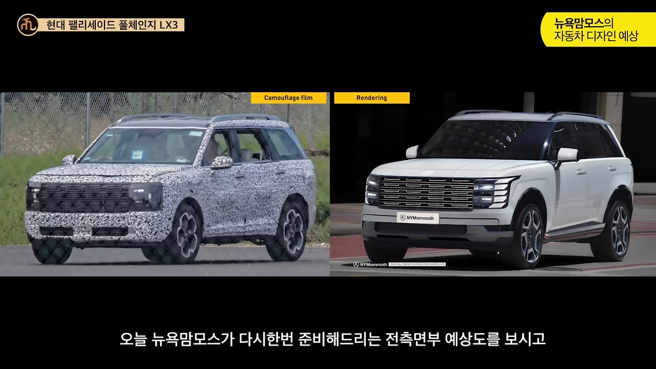 신형 팰리세이드는 기존의 박스형 디자인을 계승하면서도 세련된 곡선미를 가미해 고급스러움을 한층 끌어올린 것으로 보인다. 전면부에는 존재감 있는 대형 사각 그릴이 자리 잡아 웅장한 느낌을 자아내며, 측면은 유선형 보디라인과 강조된 휠 아치로 역동성을 더했다. 후면부는 경사진 루프라인과 대형 스포일러로 스포티한 이미지를 구현했다.