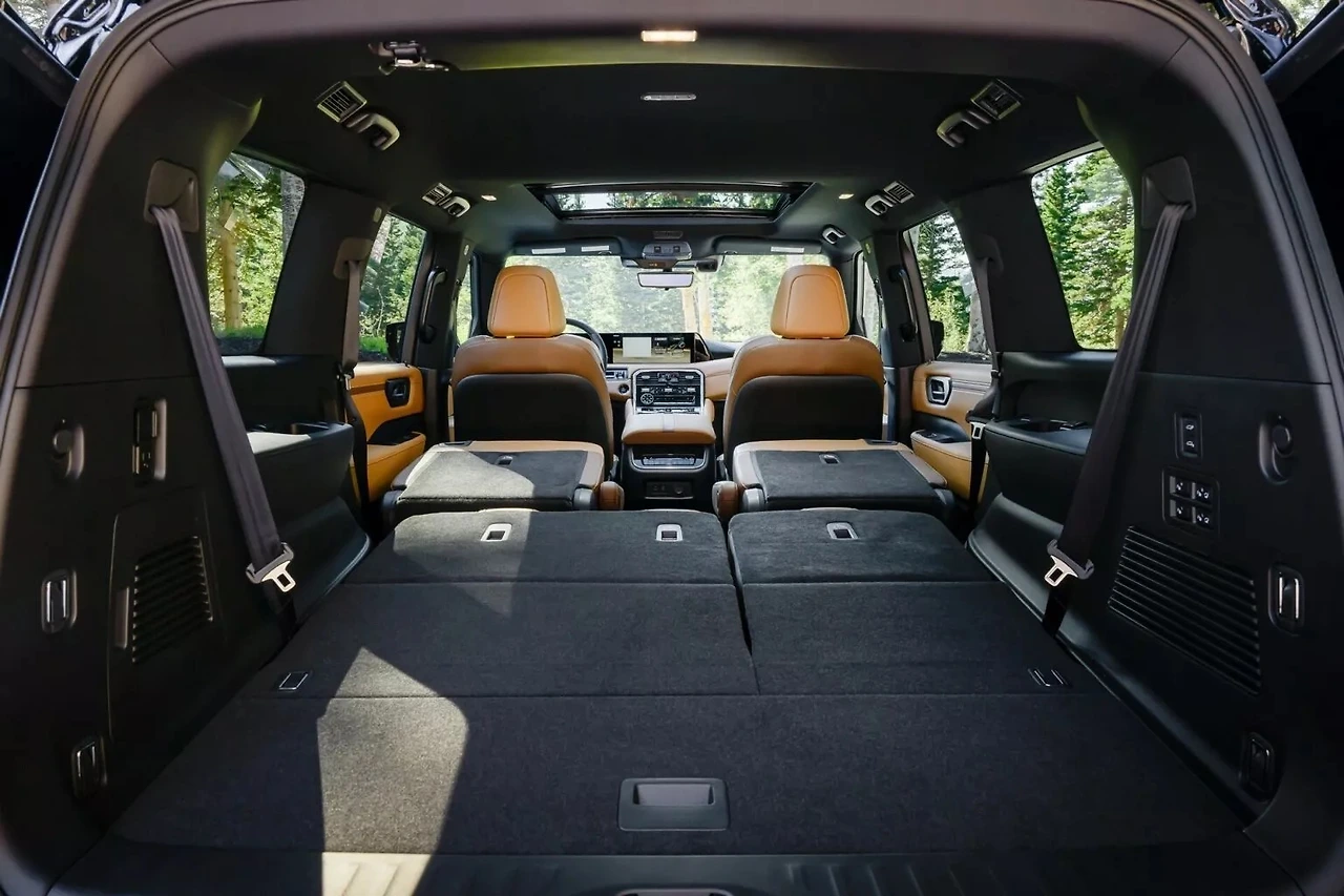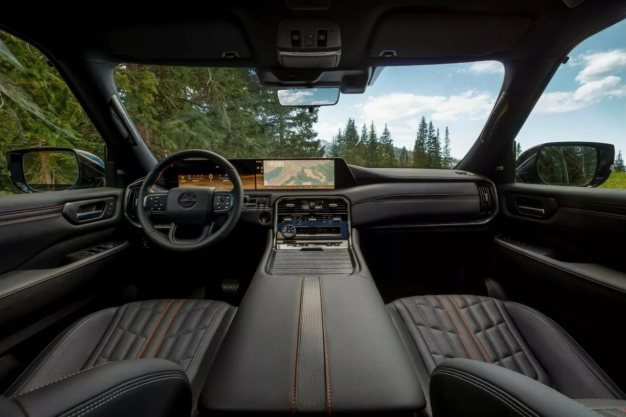 실내는 인피니티 QX80에서 영감을 받아 고급스러움을 한층 높였다. 기본 모델부터 12.3인치 디지털 계기판과 12.3인치 인포테인먼트 시스템을 제공한다. 고급 트림에서는 14.3인치 디스플레이, 오픈 포어 우드 트림, 퀼팅 가죽 시트 등 럭셔리 옵션을 선택할 수 있다.
