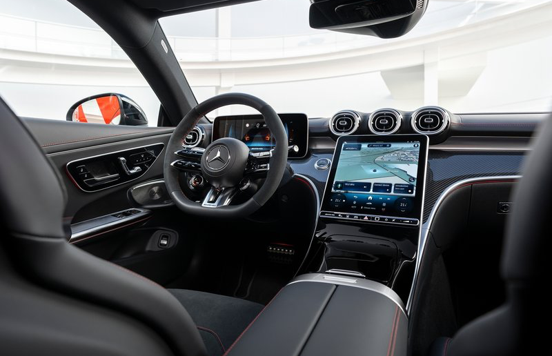 CLE 쿠페는 중형 세그먼트에서 가장 큰 크기를 자랑합니다. 이 차량은 C-Class 쿠페보다 더 넓은 실내 공간을 제공하며, 이를 통해 후석 승객들도 편안한 여행을 즐길 수 있습니다. 실내에는 12.3인치 디지털 드라이버 디스플레이와 11.9인치 세로형 중앙 디스플레이가 탑재되어 있으며, 64색상의 주변 조명 시스템이 고급스러운 분위기를 조성합니다.