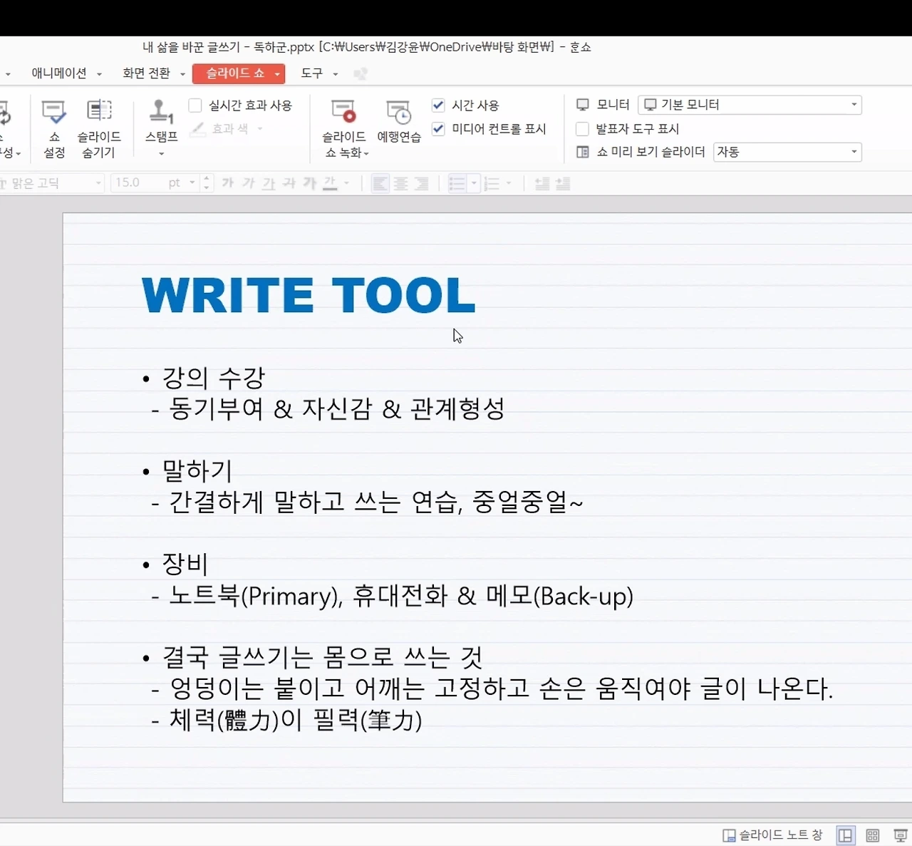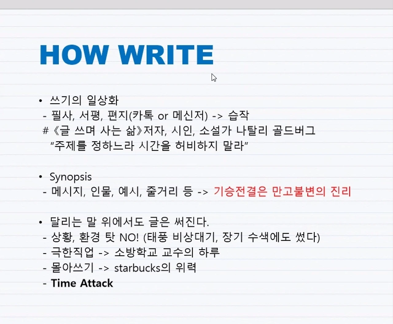 매일 쓰는 걸 목적으로 실천하라 라고 하신 말씀이