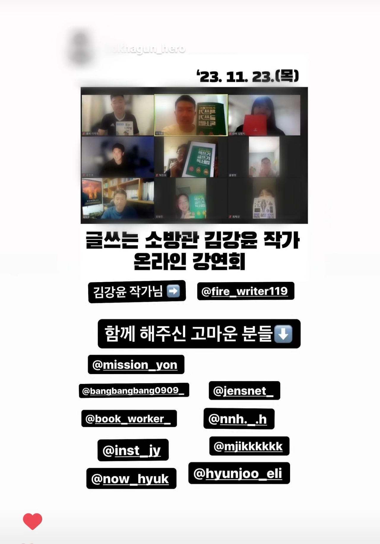 글 쓰는 소방관이신 '김강윤 작가님'의 북토크에