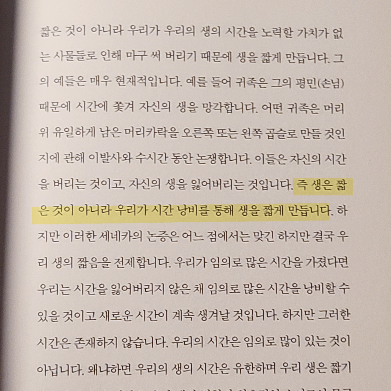 생은 짧은 것이 아니라 우리가 시간 낭비를 통해서 생을 짧게 만듭니다.