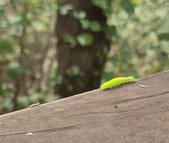 선배 애벌레 편하게 가시라고 기다려주는 예의 바르고 씩씩한 쪼매난 나방 애벌레