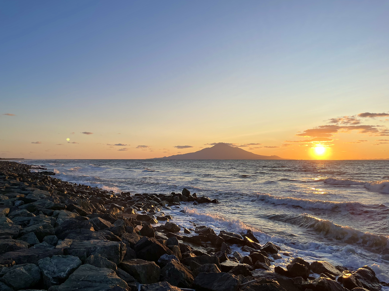 바닷가로 걸어나가자, 지는 석양과 함께 탄성이 나오는 절경이 펼쳐졌다. 부서지는 파도와 함께, 바다 너머 웅장하게 우뚝 서 있는 리시리 산의 모습… 점점 빨갛게 물들어가는 하늘. 나는 한참을 넋을 놓고 그 풍경을 바라보았다.