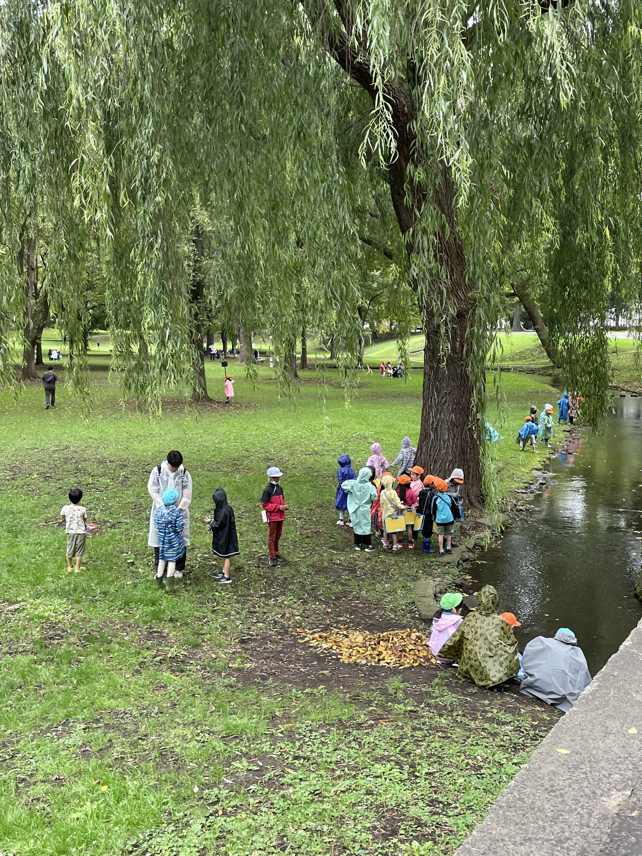소풍을 온 듯한 알록달록한 모자를 쓴 유치원생들이 있었다. 아이들은 우비를 쓴 채 녹지에서 제멋대로 꺄르륵거리며 뛰어놀고 있었고, 담당 선생들이 아이들을 불러 모으곤 했다. 그 모습을 흐뭇하게 바라보는, 스타킹을 신은 것처럼 다리가 검게 탄 수상한 외국인 한 명.