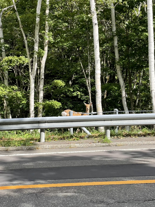 점차 민가와 건물도 드물어지고 도로의 경사도는 조금씩 가팔라져 갔다. 본격적으로 건물이 보이지 않는 숲길로 들어섰다. 우연히 가드레일까지 나와 풀을 뜯던 한 사슴과 마주쳤다. 오로론 라인 이후 오랜만에 보는 사슴이었다. 웃겼던 건 정말 큼지막한 화물 트럭이 눈앞에 쌩 하고 지나가는데도, 사슴은 눈 하나 깜짝 않고 그 자리에 선 채 날 뚫어지게 쳐다보고 있었다. 트럭은 무서워하지 않는데, 멈춰 선 내가 무섭다니. 동물에게 달리는 차량보다 더욱 무서운 존재는 인간 그 자체인가 보다.