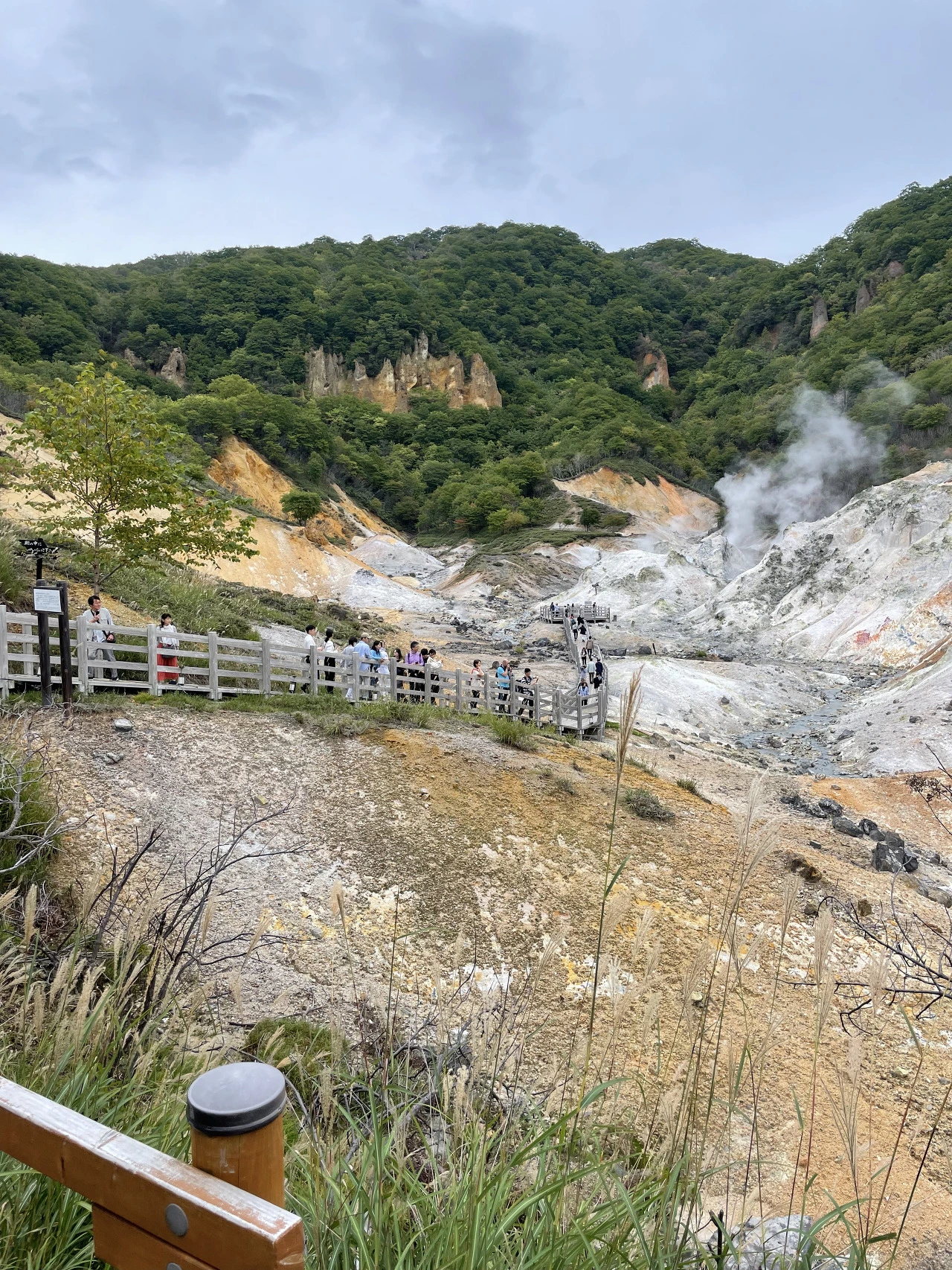 흐린 하늘 위로 피어오르는 유황연기들과 함께, 지옥온천은 마치 벌채나 광석 채취를 위해 깎아지른듯한 광산 같은 모습이었다. 사실 어제 방문을 목적으로 검색을 하면서 ‘꼭 마치 다른 세상에 온 것만 같다.’라는 리뷰를 읽었는데, 정말 지옥에 왔다는 색다른 기분은… 커녕 그저 썩은 계란냄새가 진동하고 있었다.