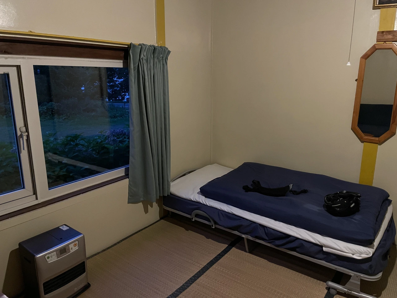 숙소 위치에는 정말 낡은 나무집 하나가 있었다. 산속에 사는 자연인이 살 법한 숙소의 모습에, 앞에 두고도 ‘도대체 숙소가 어디야?’ 라며 반신반의했는데, ‘INN’이라는 영어단어를 보고 그제야 이곳이 내가 머무를 숙소라는 것을 알았다. 문을 열자 적막한 좁은 복도가 나를 반겼다. 이윽고 주인이 나오더니 조용하게 나를 방으로 안내했다. 꼭 침대도 제대로 된 침대가 아니라 병실에서 쓰는 간이침대처럼 생겼는데, 방은 불을 껴도 꽤 어두운 편이었다. 심지어 와이파이도 없고 산 위라서 그런지 인터넷조차 거의 잘 터지지가 않았다.