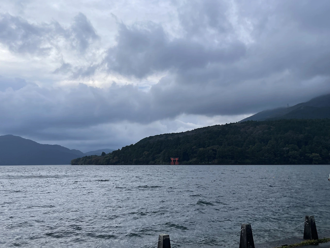 먼저 하코네에서 점찍어 두었던 ‘평화의 토리이’를 보러 갔다. 호수 위에 빨간 토리이가 서 있는 유명한 명소였다. 자전거와 함께 꼭 그 토리이 앞에서 사진을 찍고 싶었지만, 도착하자마자 이 소망도 이루어질 수 없다는 것을 깨달았다. 토리이에서 사진을 찍기 위해 선 줄이 족히 30분 이상은 기다려야 할 정도로 길어 보였다.