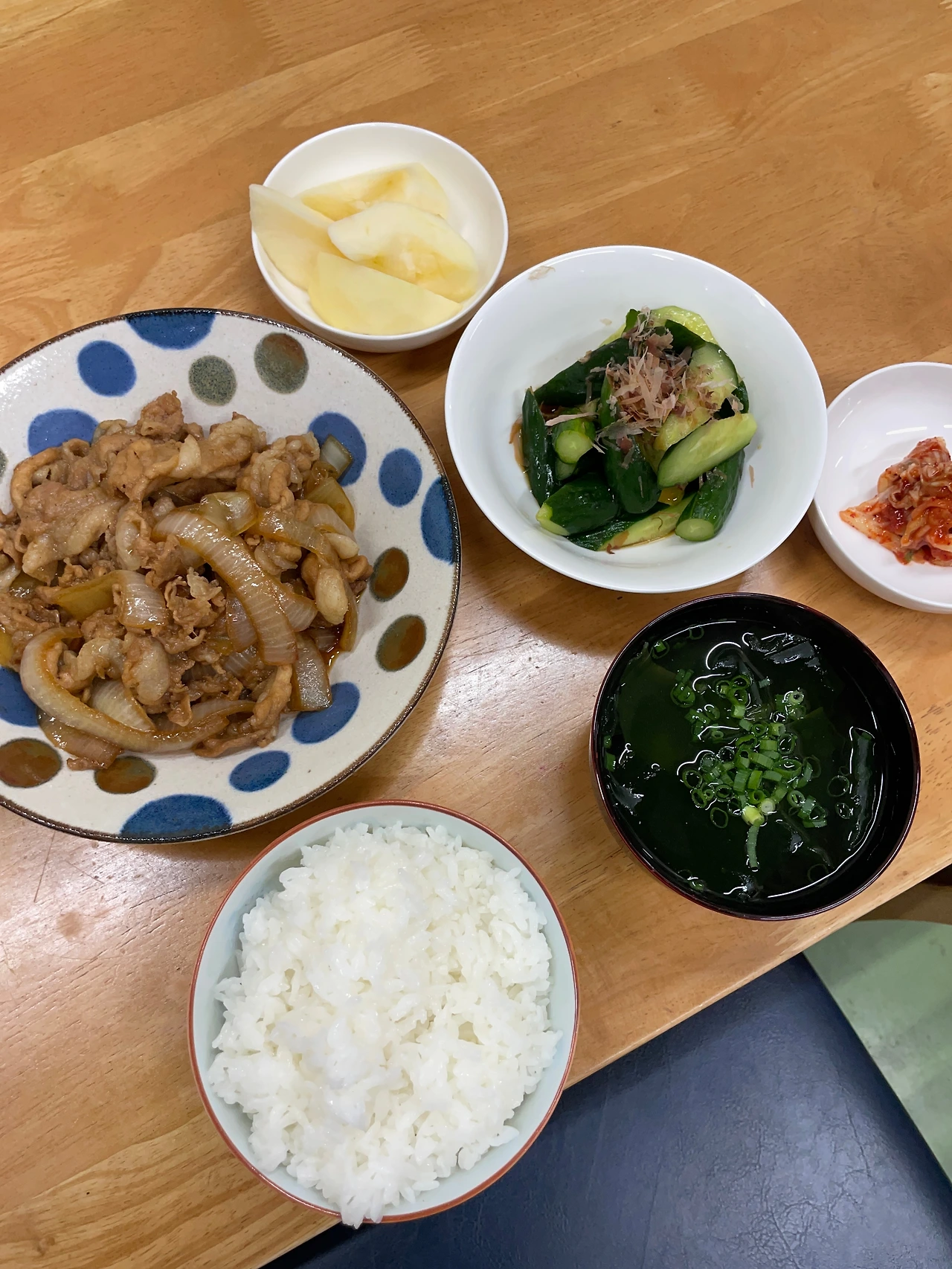 극구 손사래를 치며 사양했지만, 아주머니는 쿨하게 주방으로 홀연히 들어가 버렸다. 쫄쫄이를 입은 내 차림새가 꽤 배 곪은 듯한 인상을 팍팍 풍겼나 보다. 이윽고 정성스러운 반찬들과 함께 쇼가야키 정식이 나왔다.